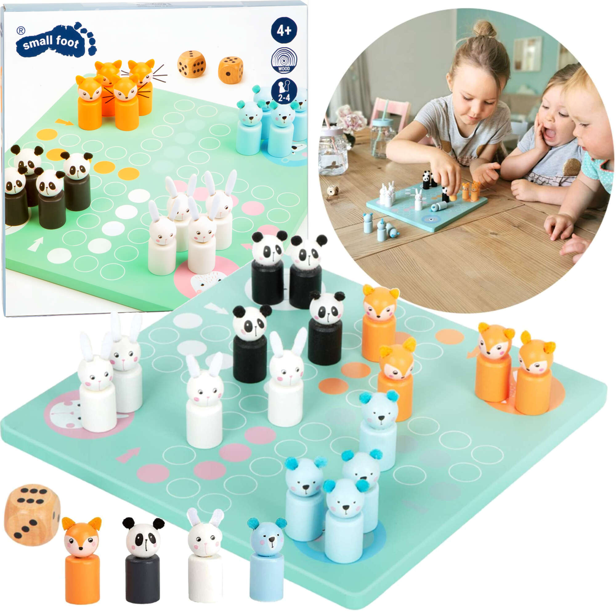 Malá nožní hra Ludo Animals Pastelová dřevěná hra Chinaman's Game