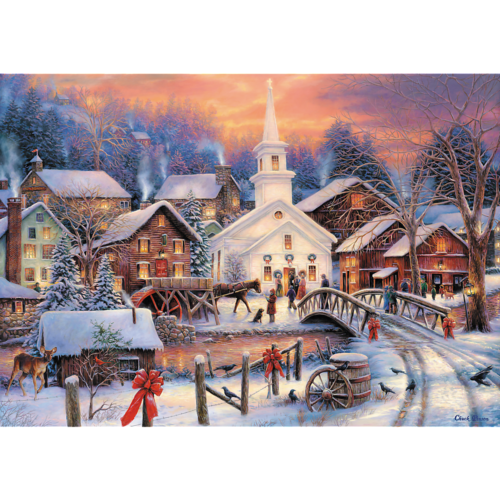 Sada skládaček se skládá z 1000 prvků a umožňuje uspořádání mimořádně pestrý obraz zobrazující Vánoce v malé vesničce obklopené lesem.