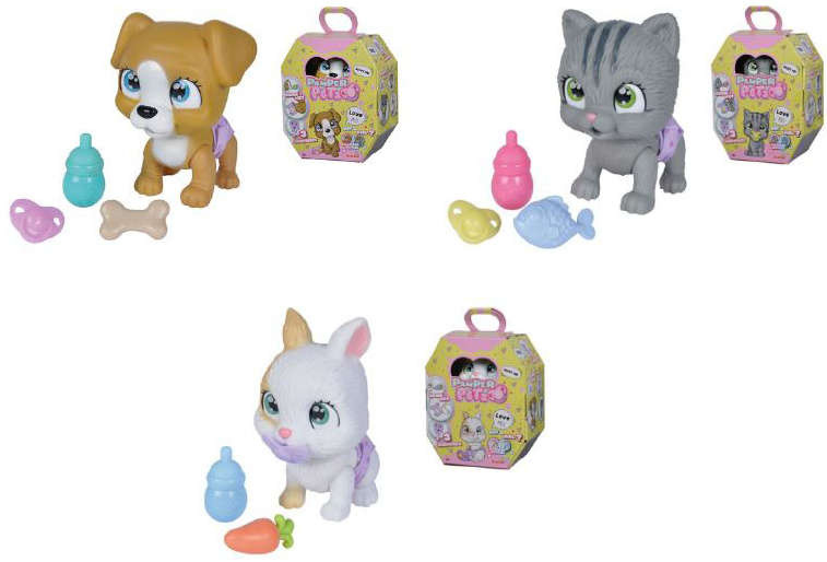 Mazlíčci Pamper Petz jsou sbírkou rozkošných zvířátek z plenkové party, která chtějí být krmena a opečovávána a hledají svého opatrovníka, který je adoptuje, dá jim jméno a zahrne je láskou. Kočka je v balíčku, před otevřením nevíme, jestli je to kluk nebo holka. Světle šedé kotě má adresu velké zelené oči, a po otevření balíčku zjistíme, zda jsme adoptovali holčičku nebo chlapečka.