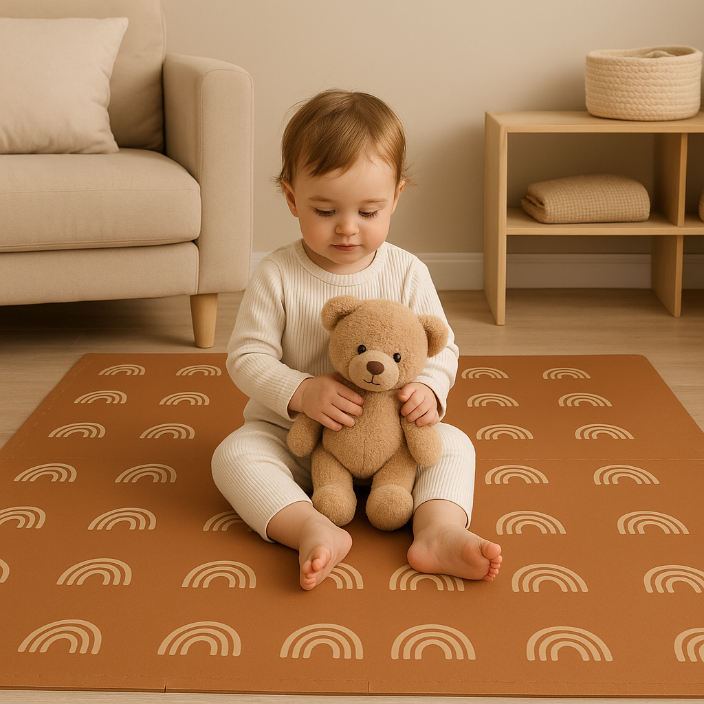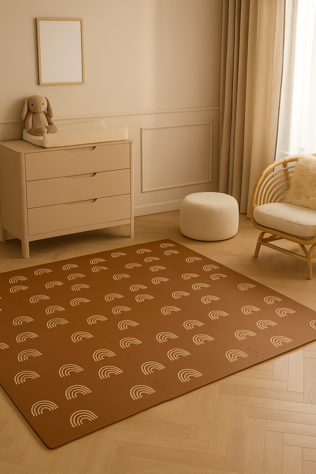 - Skládačka je vyrobena z měkké pěny EVA. Skvěle se hodí jako podložka na podlahu a měkká podložka na hraní s dítětem. Sada se skládá ze 3 pěnových skládaček a 6 koncovek ve světle hnědé barvě . Rozměry jednoho puzzle: 62x62x1 cm.