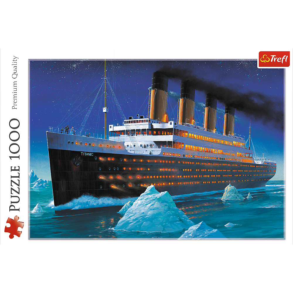 Sada skládaček se skládá z 1000 dílků a umožňuje vám sestavit temný obraz o slavné lodi Titanic.