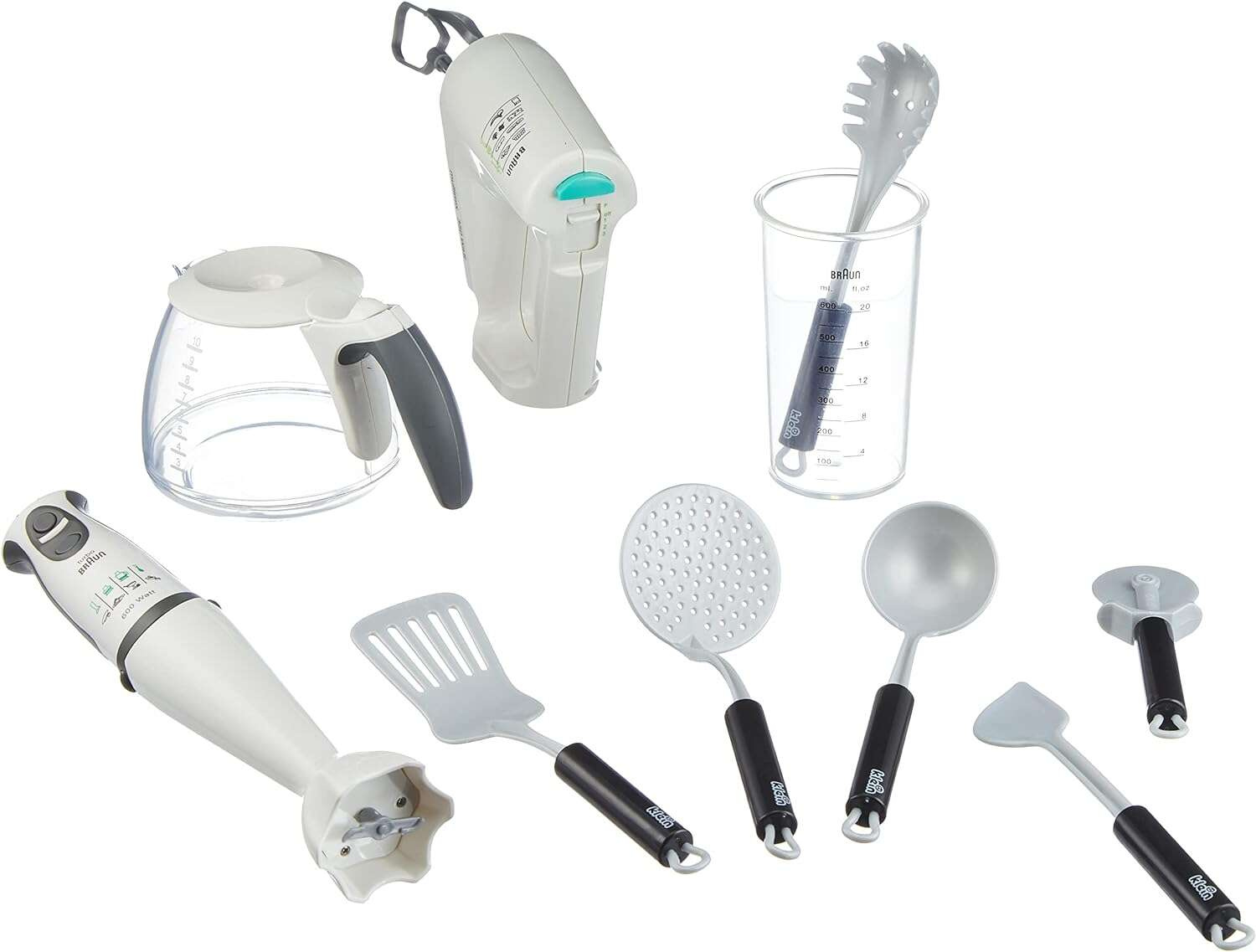Vyrobeno společností, kterou milují děti a oceňují rodiče Klein, byl vyvinut na základě licence společnosti Braun. Sada se skládá z kávovar, mixér, mixér s odměrkou a kuchyňské příslušenství. Kávovar, mixér a míchačka jsou bílé s tmavě šedými prvky, s logem Braun. Kuchyňské příslušenství, které se skládá z různých typů lžic nebo kráječů na pizzu, jsou ve stříbrné barvě s černými rukojeťmi s logem Klein. Hroty míchačky se otáčejí stisknutím tlačítka a lze je také z mixéru vyjmout. Kávovar je vybaven skutečným proudem vody a zvukem vaření, a mixér má špičku, která se otáčí stisknutím tlačítka, a jeho mixovací víčko je odnímatelné. Tato kuchyňská souprava je skvělou hračkou pro všechny děti, které rády napodobují své rodiče při každodenních pracích, a díky množství realistických funkcí se s ní nemohou nudit.