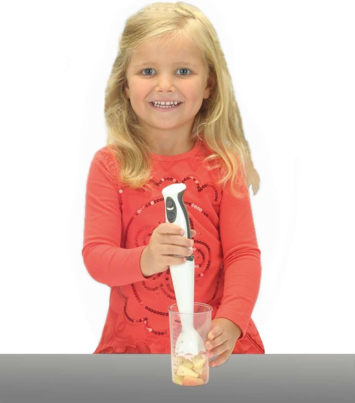 Vyrobeno společností, kterou milují děti a oceňují rodiče Klein, pochází z licence společnosti Braun. Sada obsahuje mixér a průhledná odměrná nádoba (ml. i fl. oz). Mixér je věrnou kopií přístroje Braun. Je to v bílé barvě s tmavě šedými prvky, s logem Braun. Mixovací hrot se otáčí stisknutím tlačítka, a také směšovací víčko lze sejmout. Tento mixér bude skvělým doplňkem každé dětské kuchyňky.