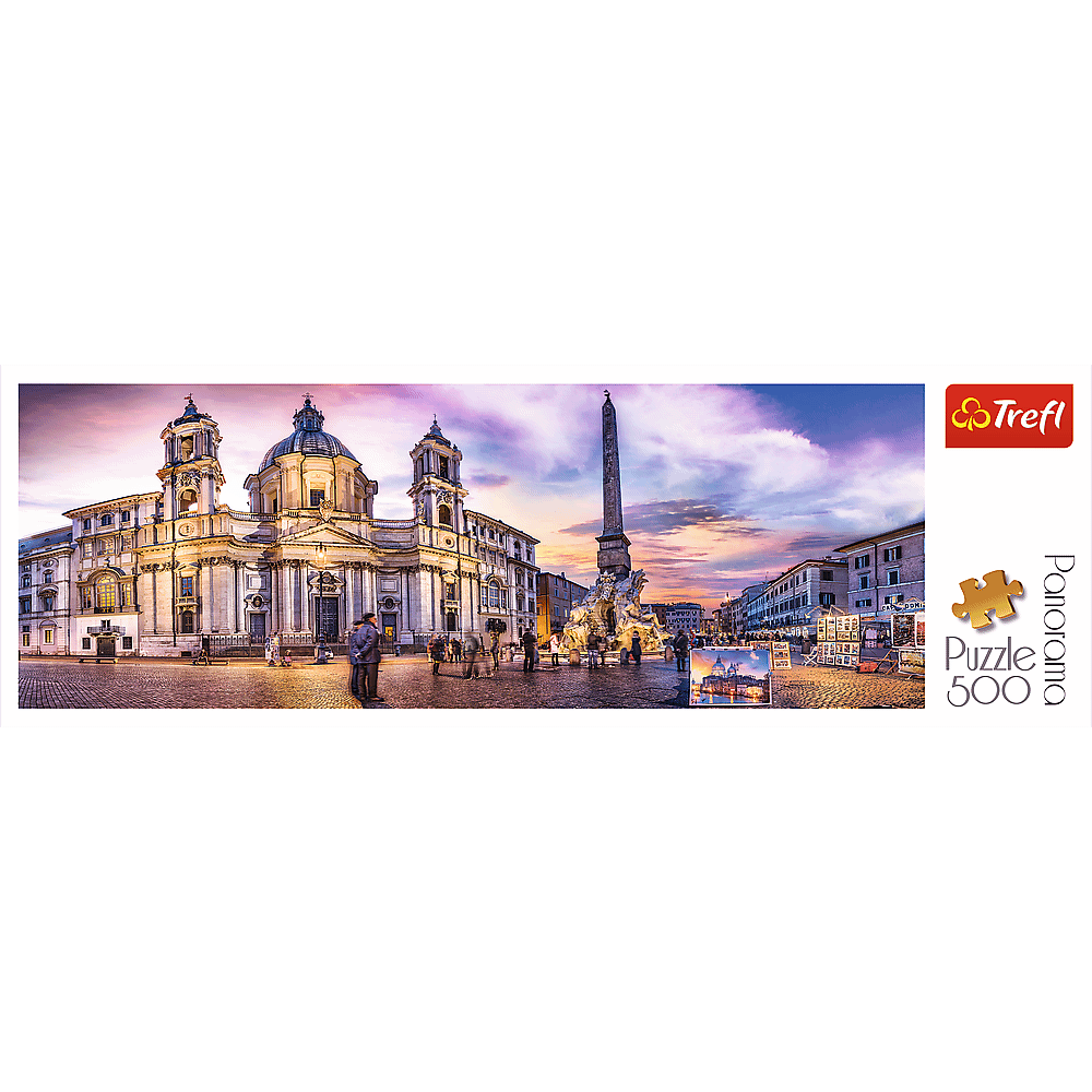 - Sada puzzle Piazza Navona Řím se skládá z 500 dílků a umožňuje sestavit krásnou krajinu na náměstí Piazza Navona v Římě. Hádanky vhodné pro děti od 3 let. Rozměry sestaveného obrázku: rozměry: 66 x 23,7 cm