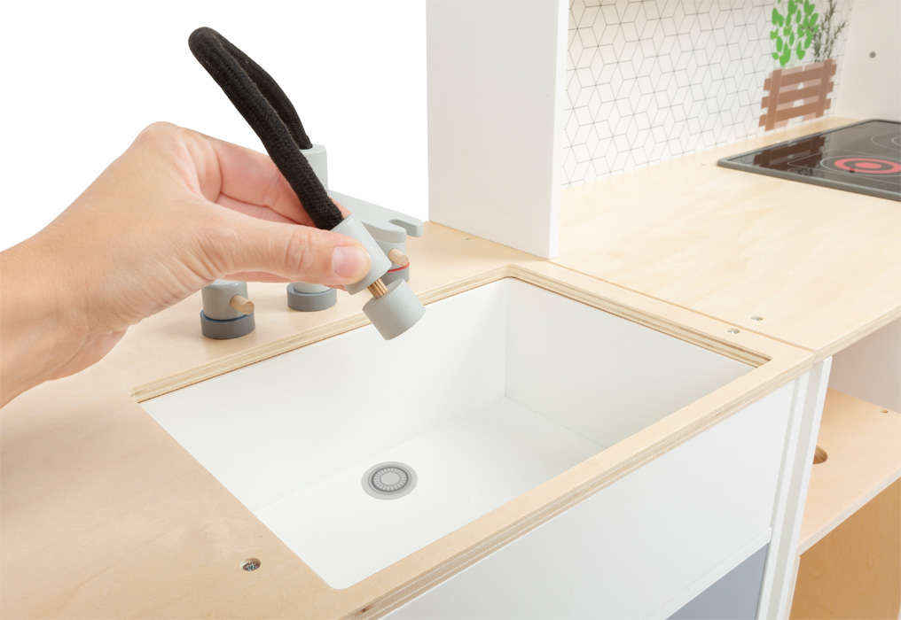 Všechny knoflíky na spotřebičích vydávají "cvakavý" zvuk. Kromě mnoha domácích spotřebičů jsou v kuchyňce také police a pracovní deska, kde si děti mohou připravit své oblíbené pochoutky. Kuchyňka je vyrobena z kvalitního dřeva, zatímco nádobí je kovové. Kuchyňka je moderní, nabízí spoustu možností a dětem bude jistě dlouho sloužit.