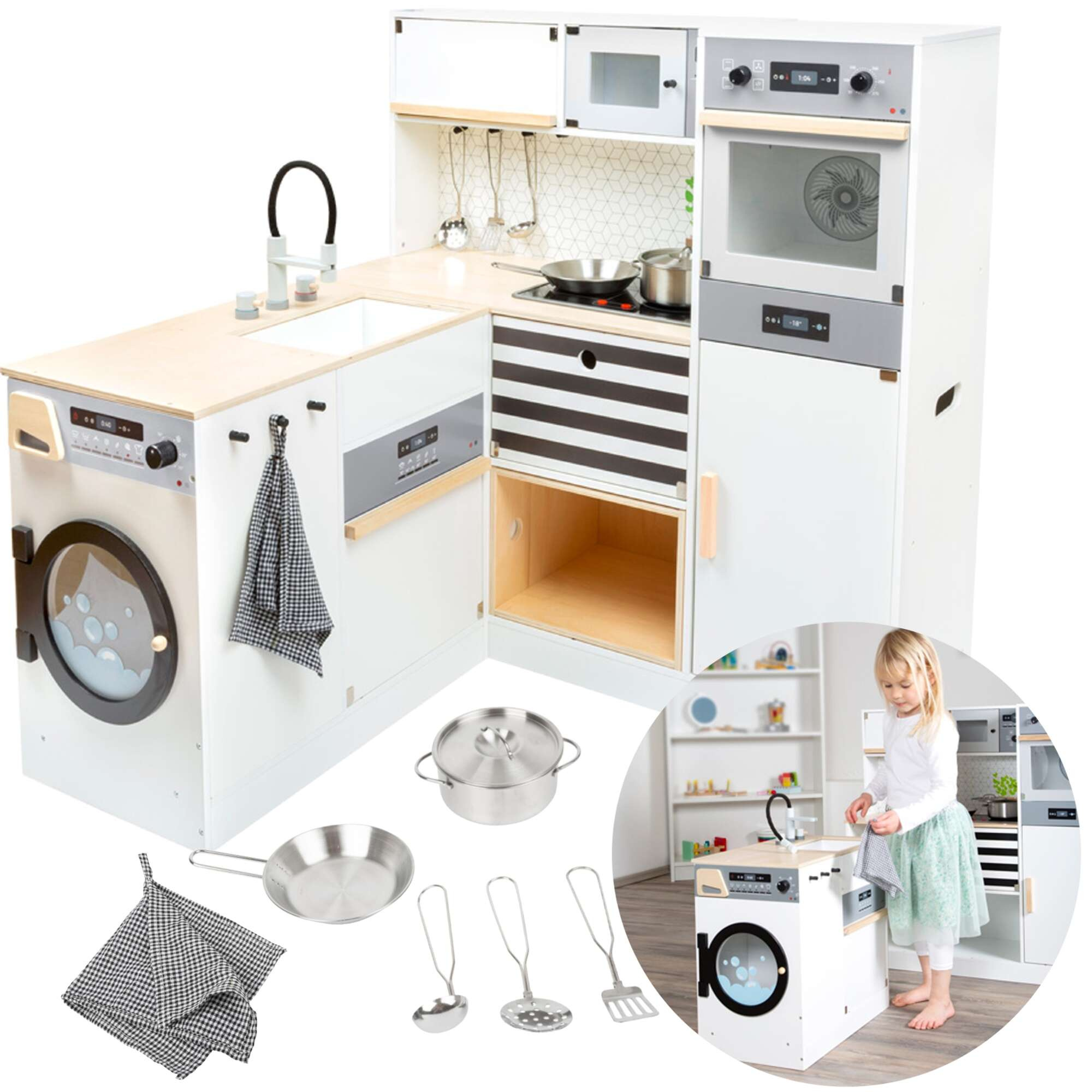 - Díky modulárnímu systému lze tuto velkou, dřevěnou a dobře vybavenou kuchyň používat jako kuchyňský kout, rohovou kuchyň nebo kuchyň s "ostrůvkem". Její součástí jsou četné domácí spotřebiče a příslušenství. - rozměry kuchyně: cca 83 x 29 x 83 cm