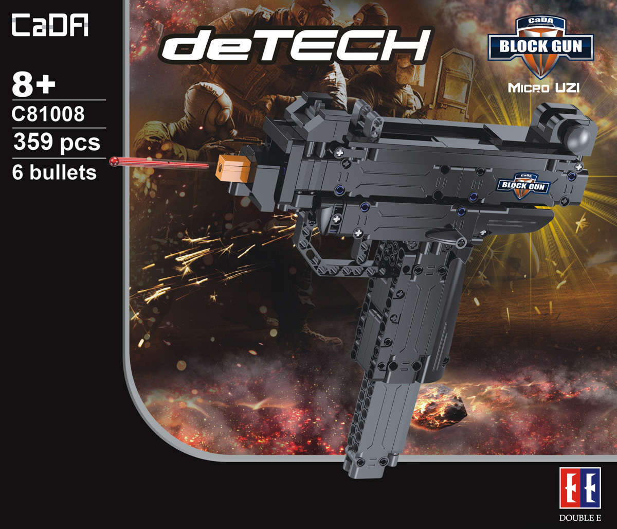 Sada se skládá z 359 dílů a umožňuje vytvořit vlastní zbraň Micro Uzi z funkční zamykání a odpalování.