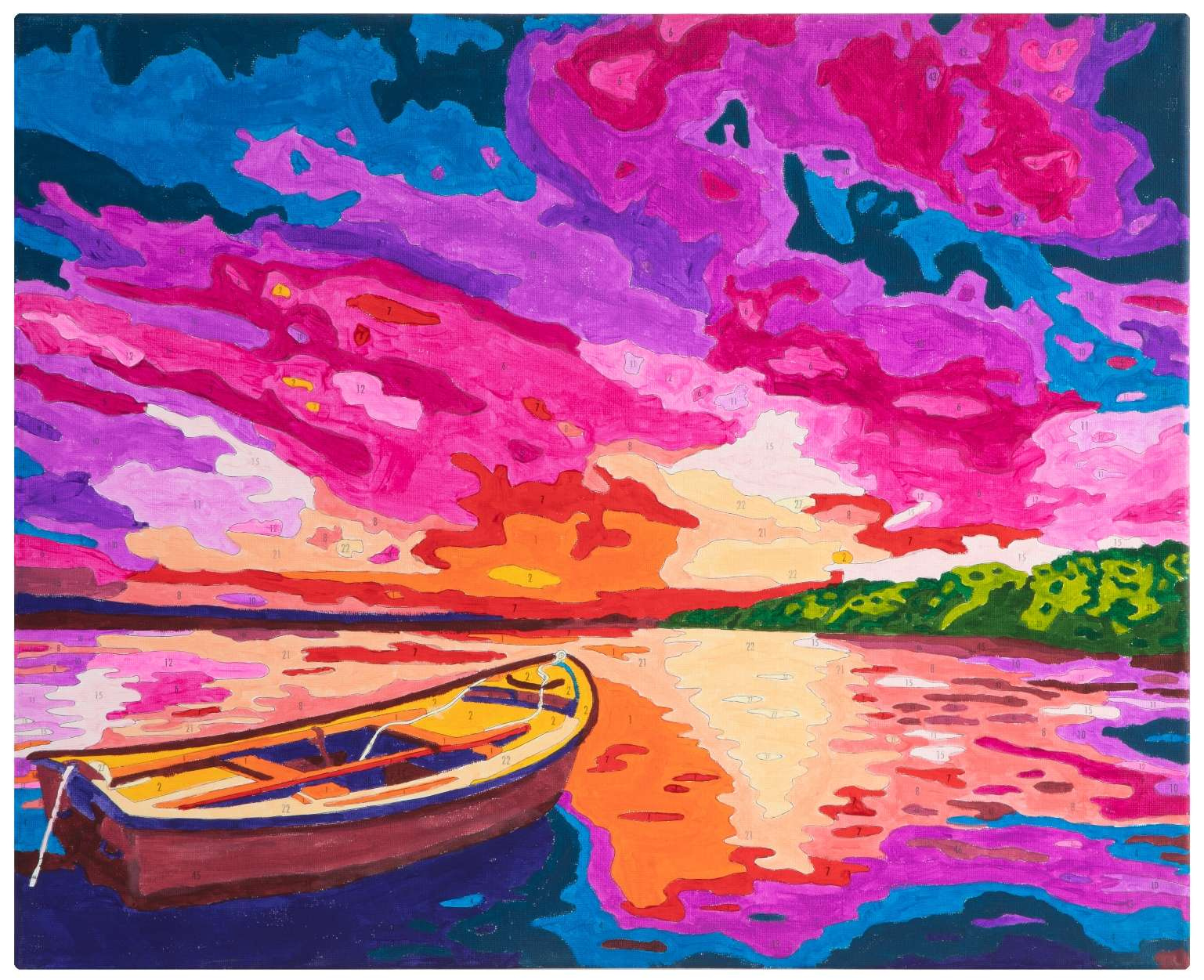 Malování podle čísel připomíná omalovánky, které známe z dětství, a zobrazuje natažený na dřevěném rámu plátno s rozdělenými a očíslovanými sektory kde ckaždé číslo odpovídá konkrétní barvě, která musí být použita k vybarvení daného pole. Po obkreslení každého sektoru vznikne krásný obrázek, který lze pověsit na zeď v místnosti.