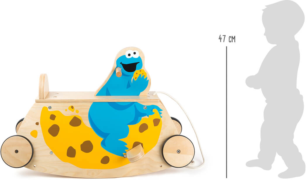 Bóje je dřevěný a zobrazuje známou Sezamová ulice - Cookie Monster. Má rukojeť, které může dítě uchopit, a místo na adrese podpora nohy.