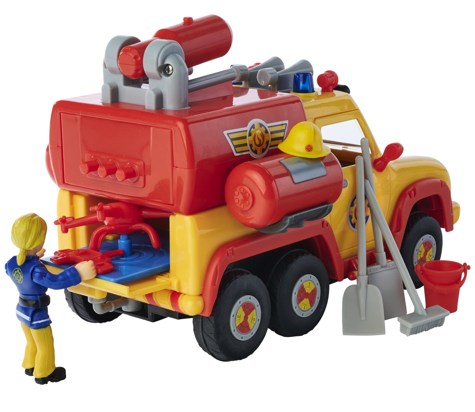 Wóz strażacki Venus stworzono w charakterystycznych dla Strażaka Sama barwach, czyli w kolorze czerwono-żółtym. Pojazd wyposażony jest w sześć gumowych kół, dzięki którym porusza się on nie tylko z łatwością, ale także stabilnie po wszelkich powierzchniach płaskich. Wóz posiada otwierane boczne drzwi, otwieraną przyczepę, w której można schować wszelakie akcesoria pomagające w akcjach ratowniczych.