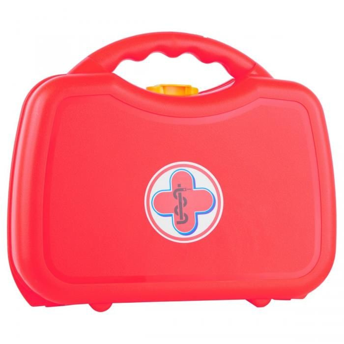 Tato lékárnička je uložena v roztomilém červeném kufříku s pohodlnou rukojetí. Případ má žlutá západka aby se při manipulaci neotevřel. Uvnitř je pouzdro bílé barvy a je vybaveno sloty pro každé z přiložených lékařských příslušenství, aby byl vždy uklizený a malí lékaři neměli problém najít potřebné nástroje.
