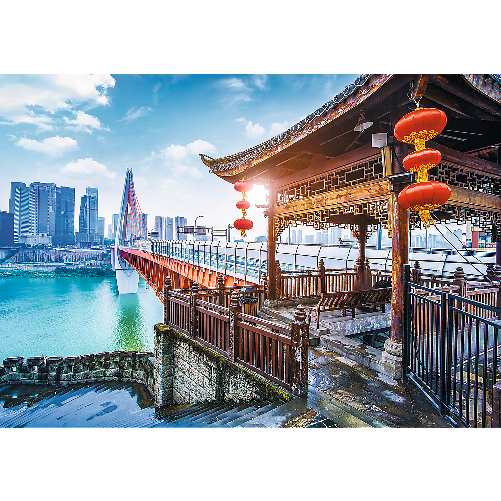 - Sada skládaček se skládá z 1 000 dílků a umožňuje sestavit mimořádně barevný obrázek zobrazující čínský Čchung-čching.