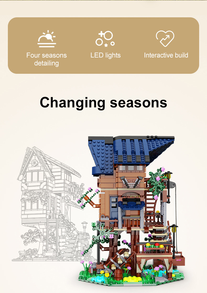 Sada se skládá z 1155 prvky a umožňuje sestavit si vlastní okouzlující domek na stromě, který je vybaven mnoha detaily a LED světly. Dům má pohyblivé části, takže vypadá realisticky.