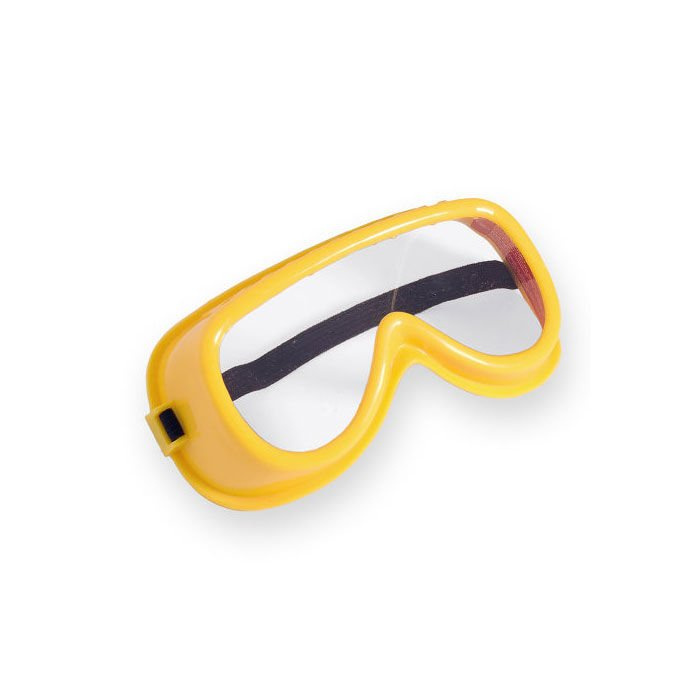- žluté ochranné brýle s plastovým čirým sklem na pružné gumičce;