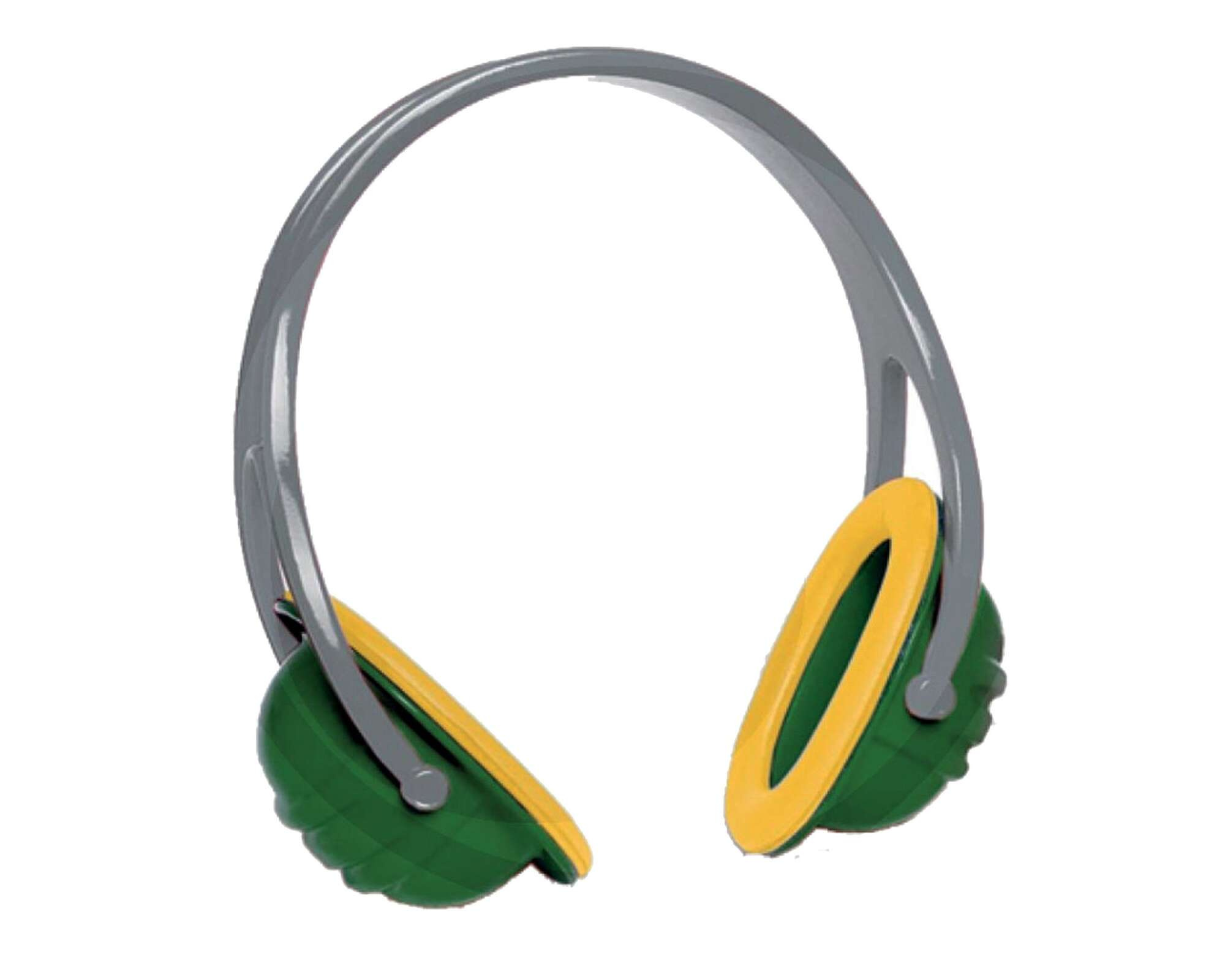 - zelenožlutá sluchátka s potlačením hluku s hračkami,