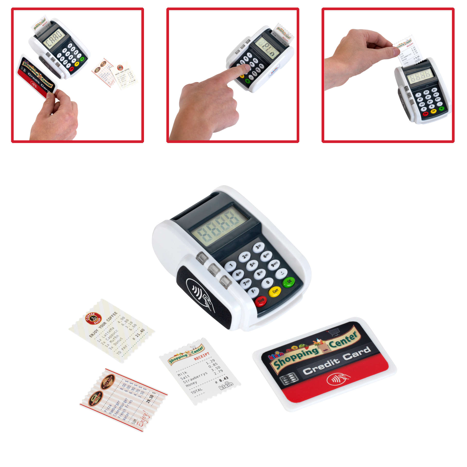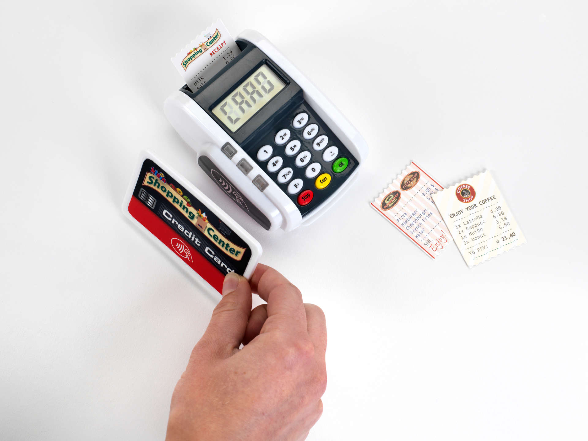 Platební terminál na hračky s kartami a účtenkami pro hrající obchod