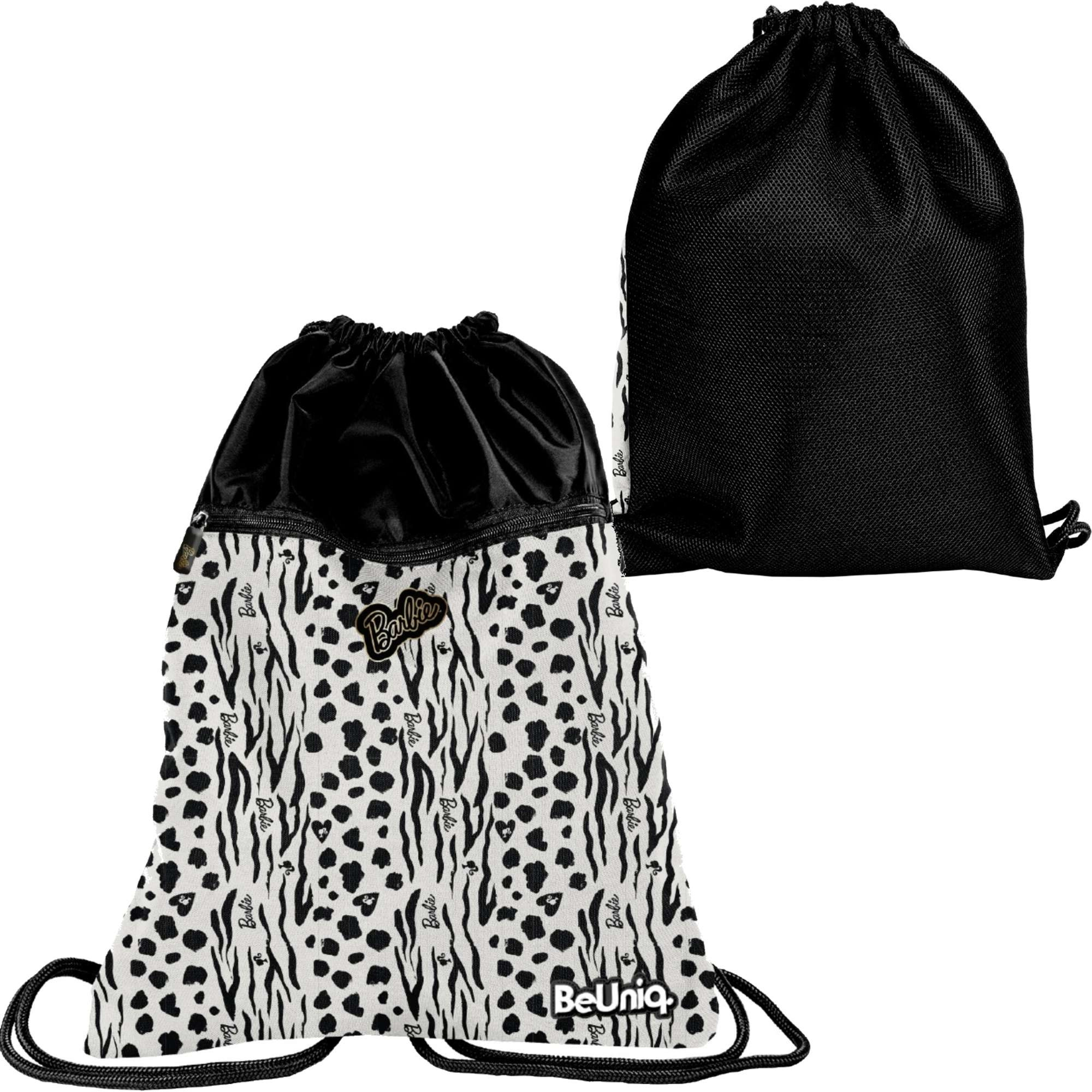Taška na cvičky je v černobílém barevném provedení a je opatřenaobrázky souvisejícími s Barbie a potiskem připomínajícím leoparda a tygra a nášivkou Barbie . Byla vyrobena z materiálů nejvyšší kvality.