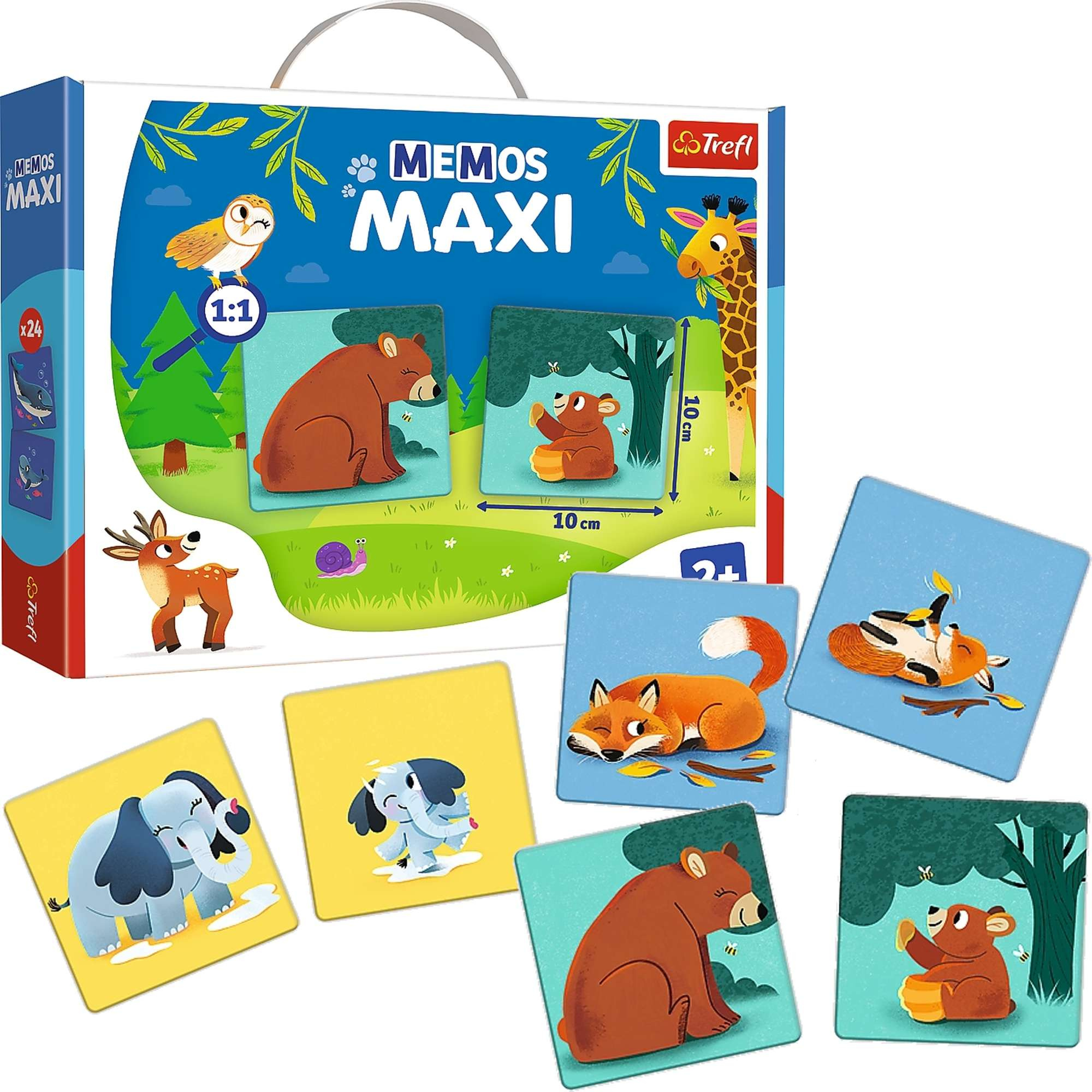 Memos Maxi je to hra na paměť, který určené pro nejmladší. Úkol hráč je kombinace všech dlaždic, které jsou krásně ilustrované a funkce barevné obrázky roztomilých zvířat a jejich děti, ve dvojicích, aktivace vizuální paměti. Velké obklady a dlažby jsou ve velikosti 10 x 10 cm a byly vyrobeny z silná lepenka, takže jsou bezpečné pro malé děti a perfektně padnou do jejich malých ručiček.