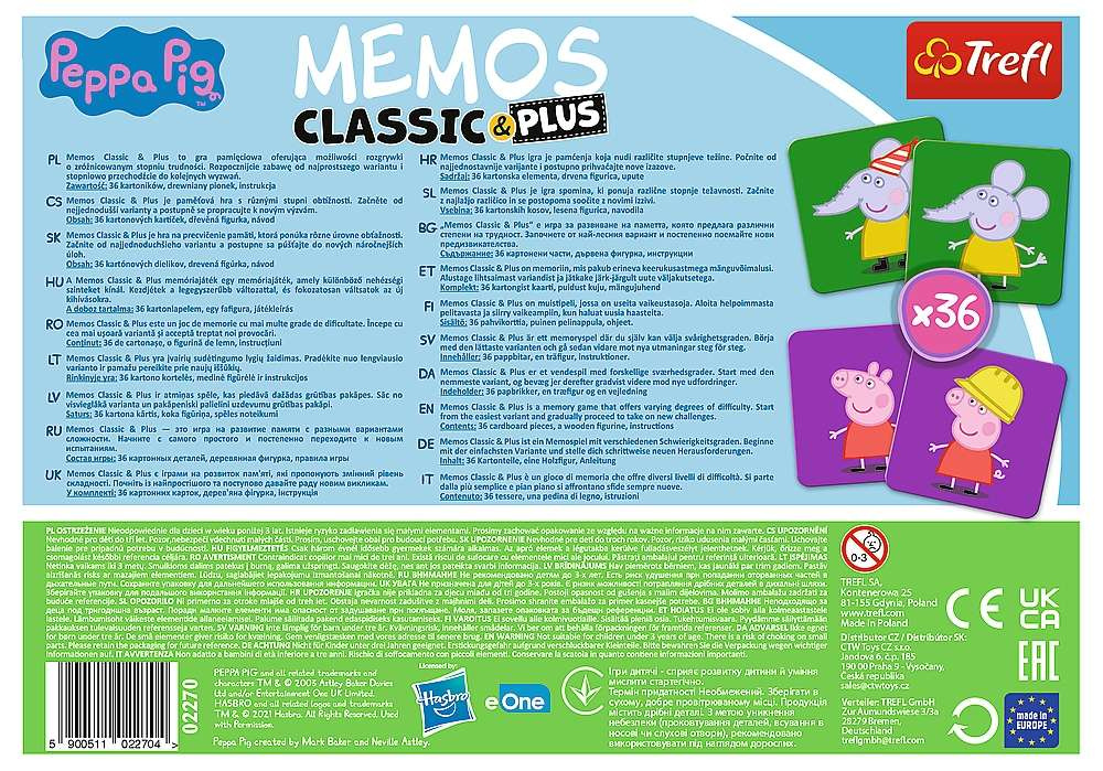 - Memos Classic&Plus je paměťová hra, která nabízí herní možnosti různých stupňů obtížnosti. Úkolem hráče je spojit všechny destičky, které jsou zdobeny grafikou s postavičkami z animované pohádky Prasátko Peppa, do dvojic.