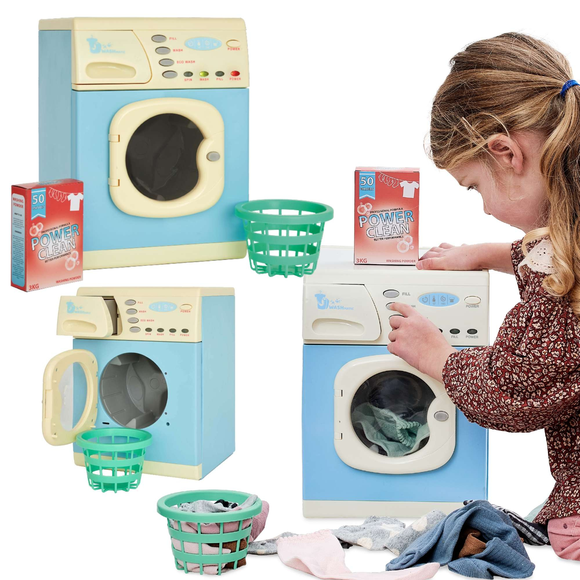 Tato nádherná pračka s realistickými funkcemi umožní dětem napodobovat své rodiče při každodenních pracích, a to vše v bezpečném prostředí pro bezstarostnou zábavu.