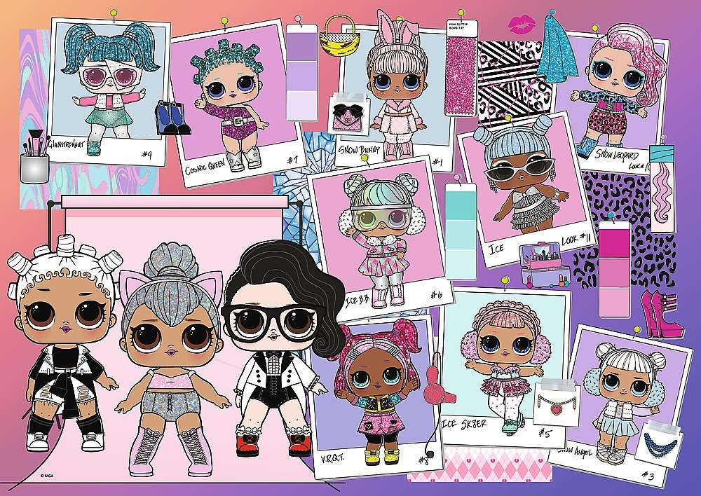 - Sada skládaček se skládá z 200 dílků a umožňuje sestavit mimořádně barevný obrázek s panenkami L.O.L. Překvapení!. Rozměry skládaného obrazu jsou 48 x 34 cm.