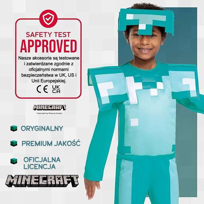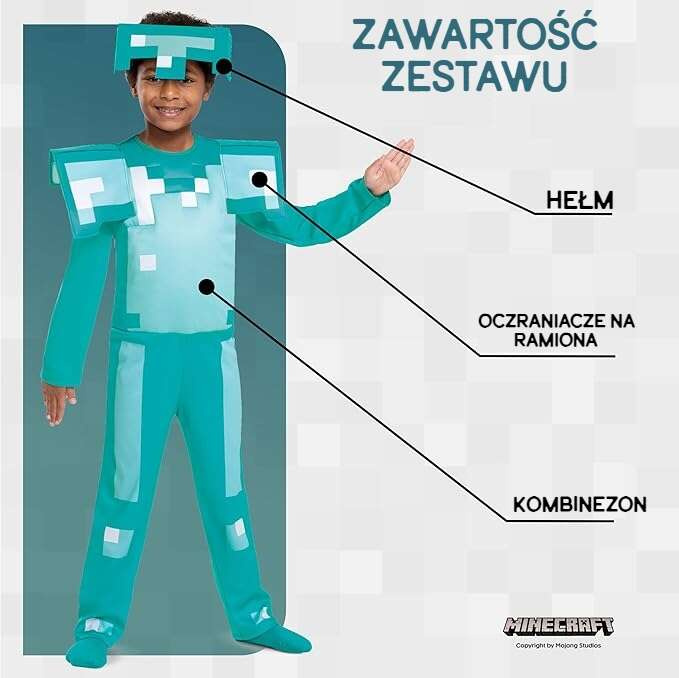 Kostým Minecraft, karnevalový kostým diamantové brnění 127-136 cm (7-8 let)