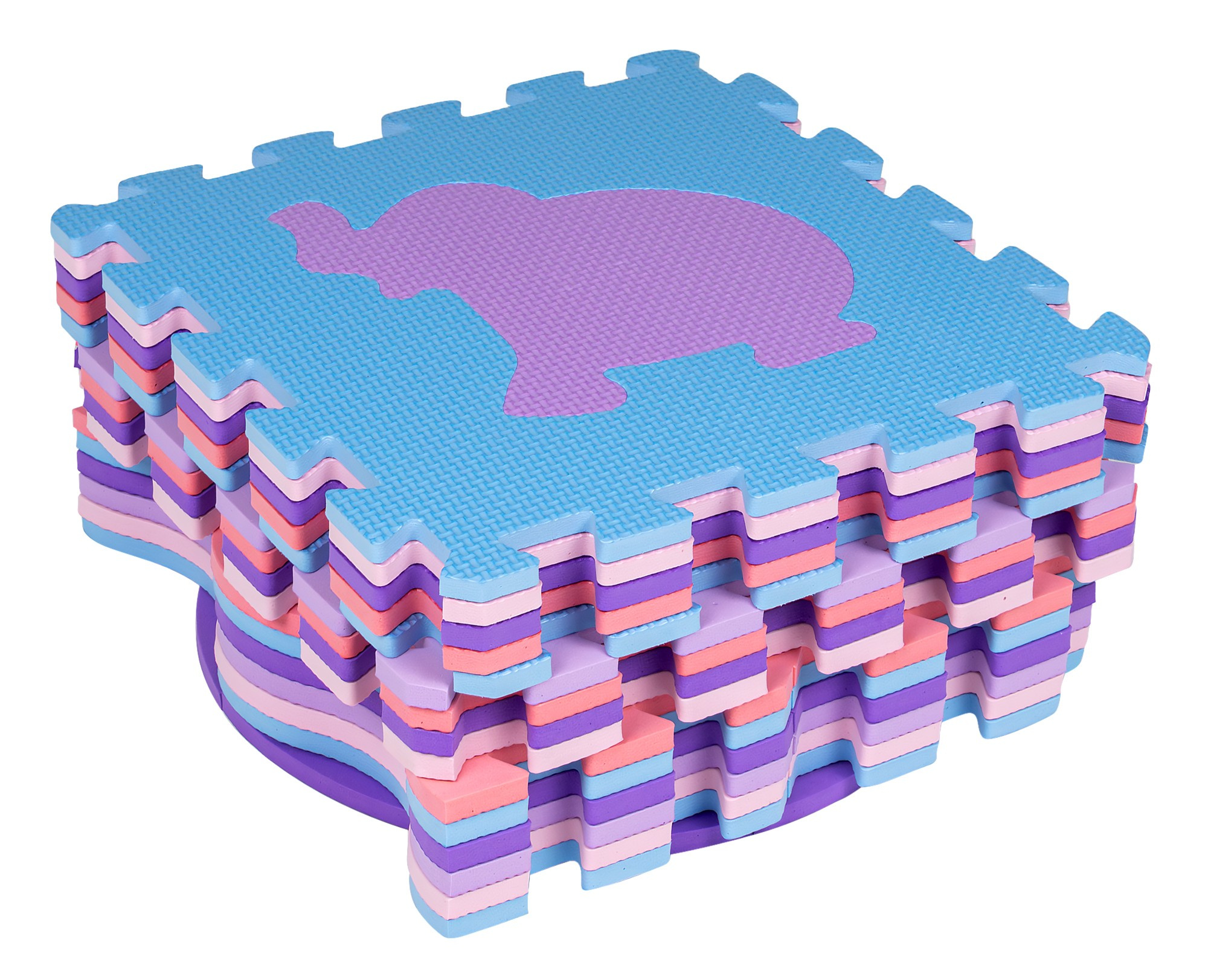 - Rozměry podložky: Rozměry podložky: 120 x 120 x 1 cm. Sada obsahuje 9 puzzle, 9 vysouvacích dílků, 12 okrajů, 4 rohy. Vyrobeno z pružné pěny EVA. Neobsahuje ftaláty, formamid, PVC ani bisfenol A. Certifikováno CE v Evropě.