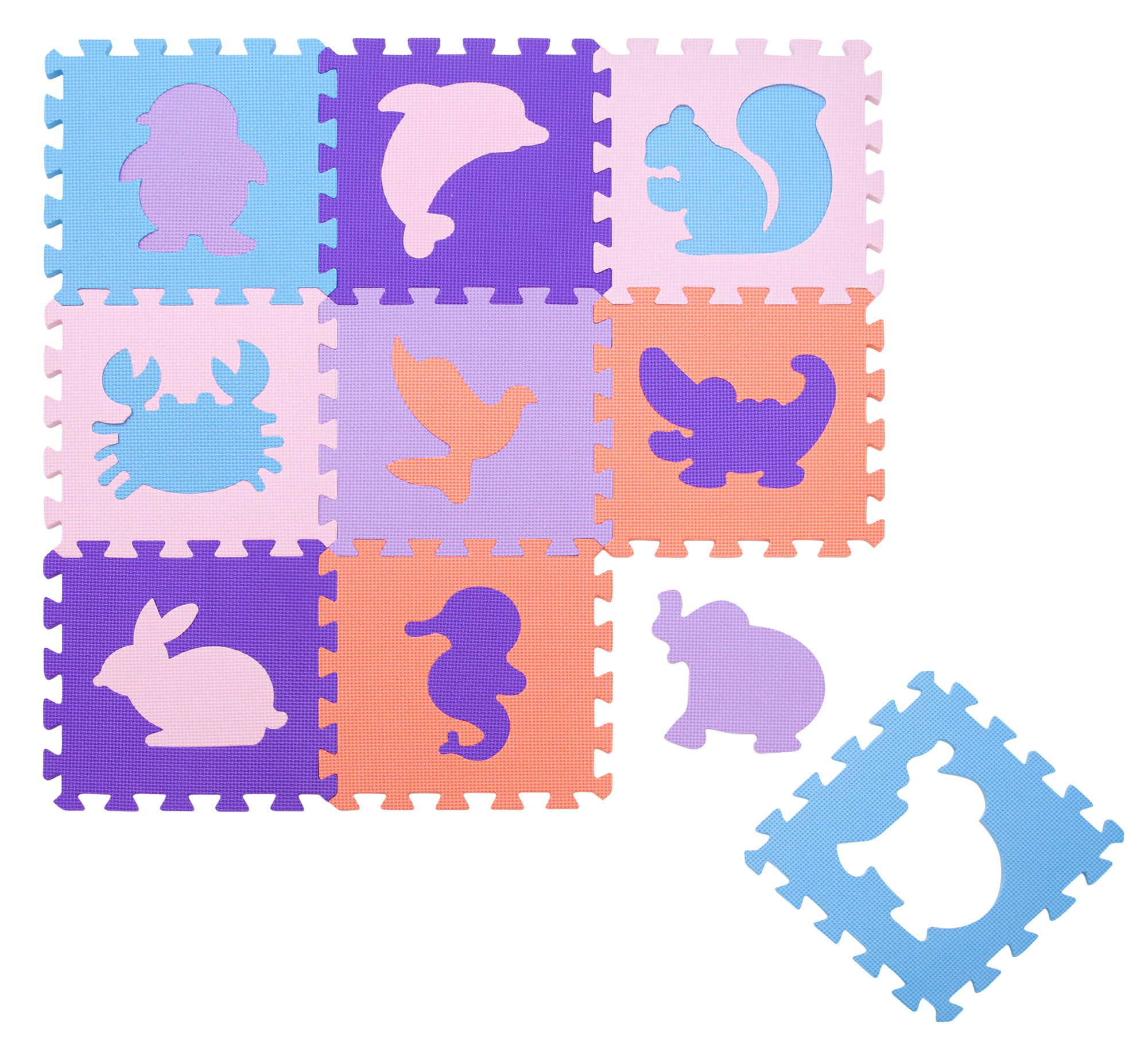Pěnová podložka je nejen bezpečným místem pro hru nejmenších, ale také podporuje jejich rozvoj. Vaše dítě může beze strachu trénovat převalování ze strany na stranu, plazení nebo první krůčky. Až batole vyroste, lze pěnové puzzle použít jako hračku. Dílky lze spojovat plošně, ale i prostorově a vytvořit tak například kostku. Taková sada podněcuje dětskou představivost. Každé puzzle má vyjímatelný dílek, který lze použít k výuce rozpoznávání zvířat.