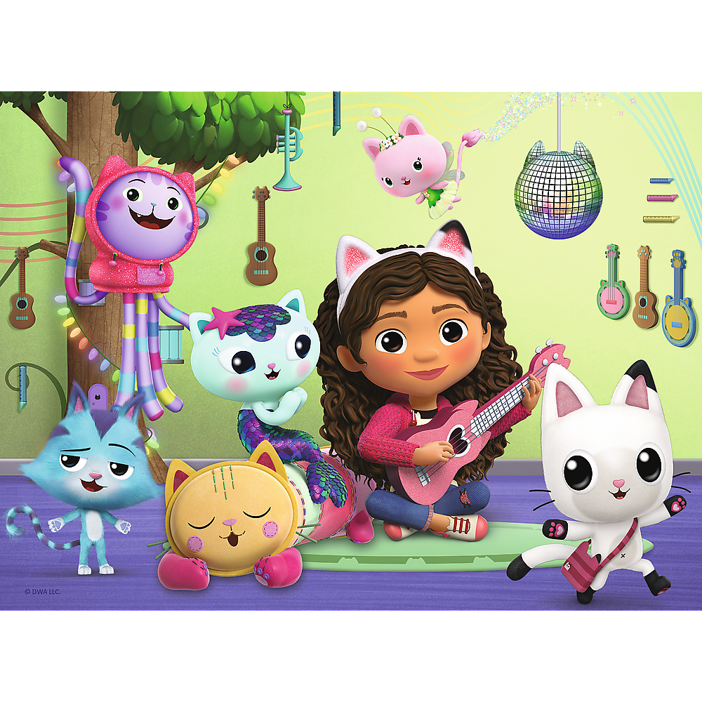 • Puzzle Gabi's Cat House se skládá z 30 dílků o rozměrech 27 x 20 cm a umožňuje sestavit obrázek, na kterém Gabi hraje na kytaru a sedí se svými kočkami.