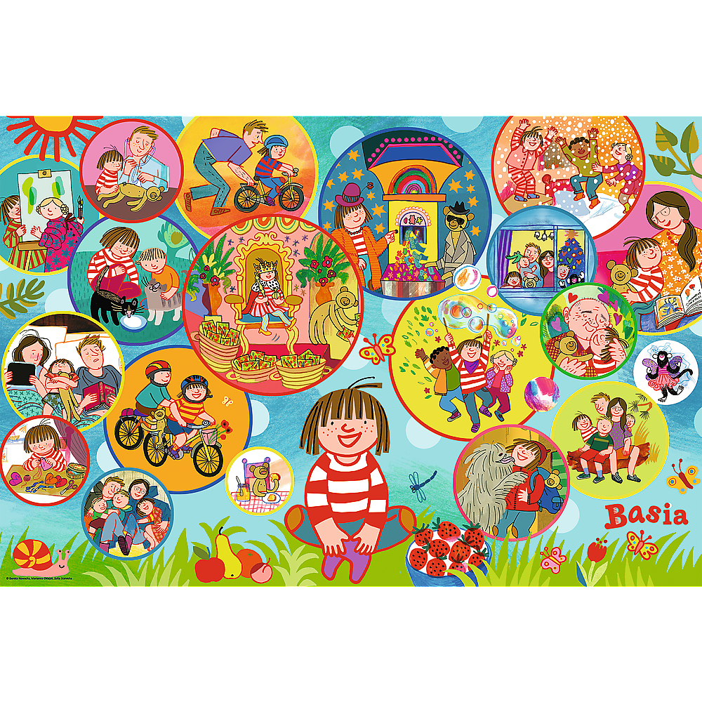 Sada skládaček Strávit den s Basiou se skládá z 100 prvků i umožňuje sestavit velmi pestrý obrázek o Basia a její úžasná dobrodružství.
