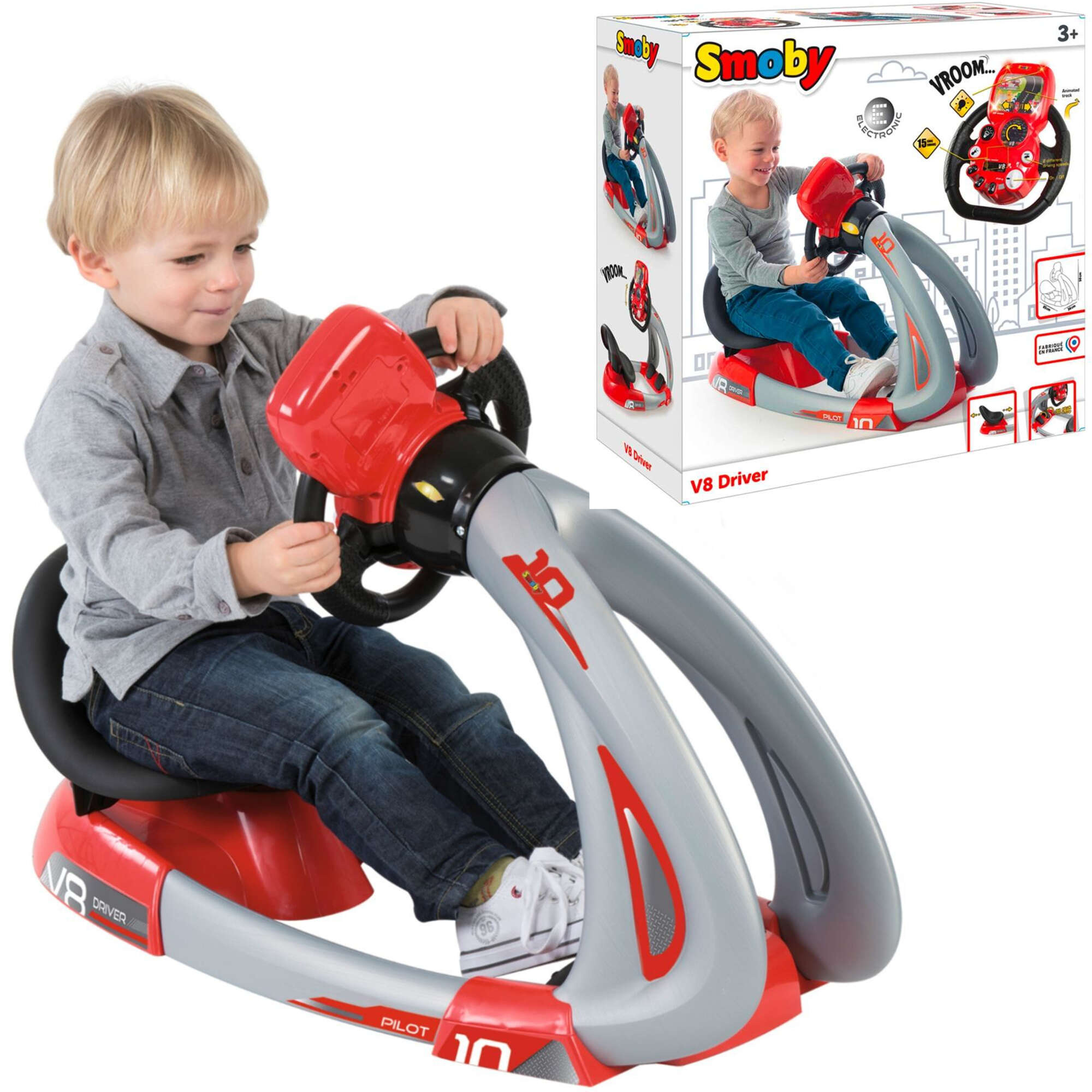 - Neobyčejný simulátor jízdy autem, vhodný pro děti již od 3 let, s nastavitelnou vzdáleností sedla od řídítek a možností připojení chytrého telefonu s bezplatnou aplikací, která obsahuje další trasy, od společnosti Smoby.