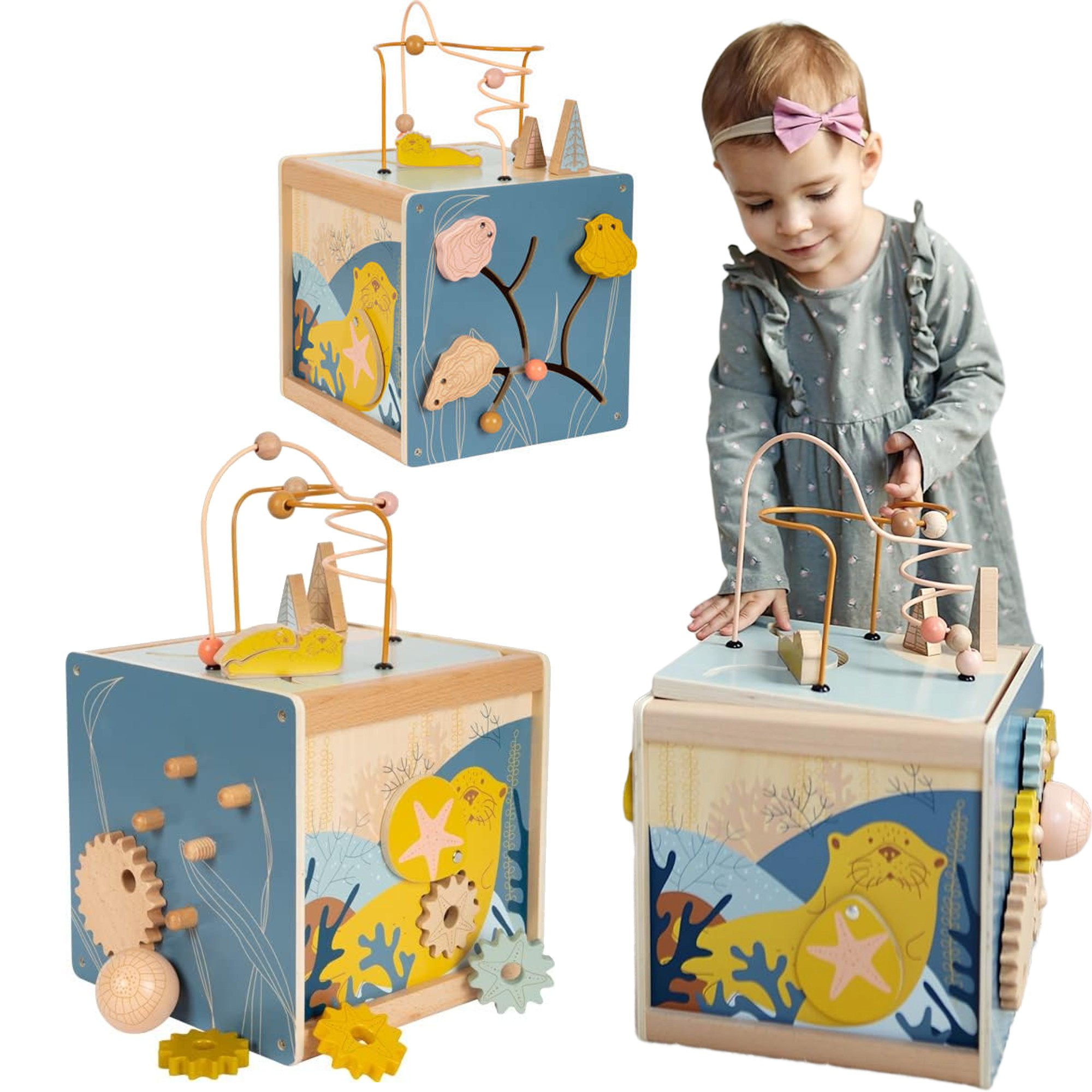 Krásně navržená scéna s tuleni a mořskými rostlinami inspiruje k interakci a vyprávění příběhů. Když se víko zajištěné západkou obrátí a vloží do krychle, krychle se změní v kostku dětská stolička! Díky podobiznám tuleňů na horní straně kostky se děti naučí, jak se toto zvíře pohybuje. Tímto způsobem se na kostce aktivity trénuje nejen rozpoznávání barev a tvarů. Jedná se o jedinečnou pohyblivou hračku s vysokou herní hodnotou, která se stane novým oblíbeným doplňkem v dětském pokoji!