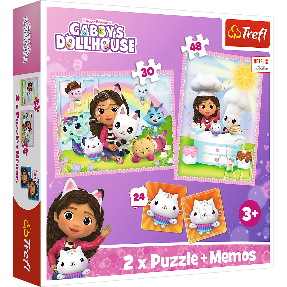 Gabi's Cat House 2v1 Puzzle 78 prvků + paměťová hra 3+ let Trefl