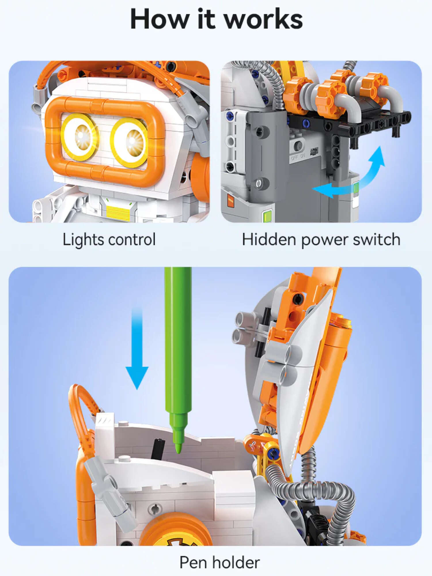Sada obsahuje 461 dílků a umožňuje postavit si vlastního robota, který kreslí přiloženým fixem.