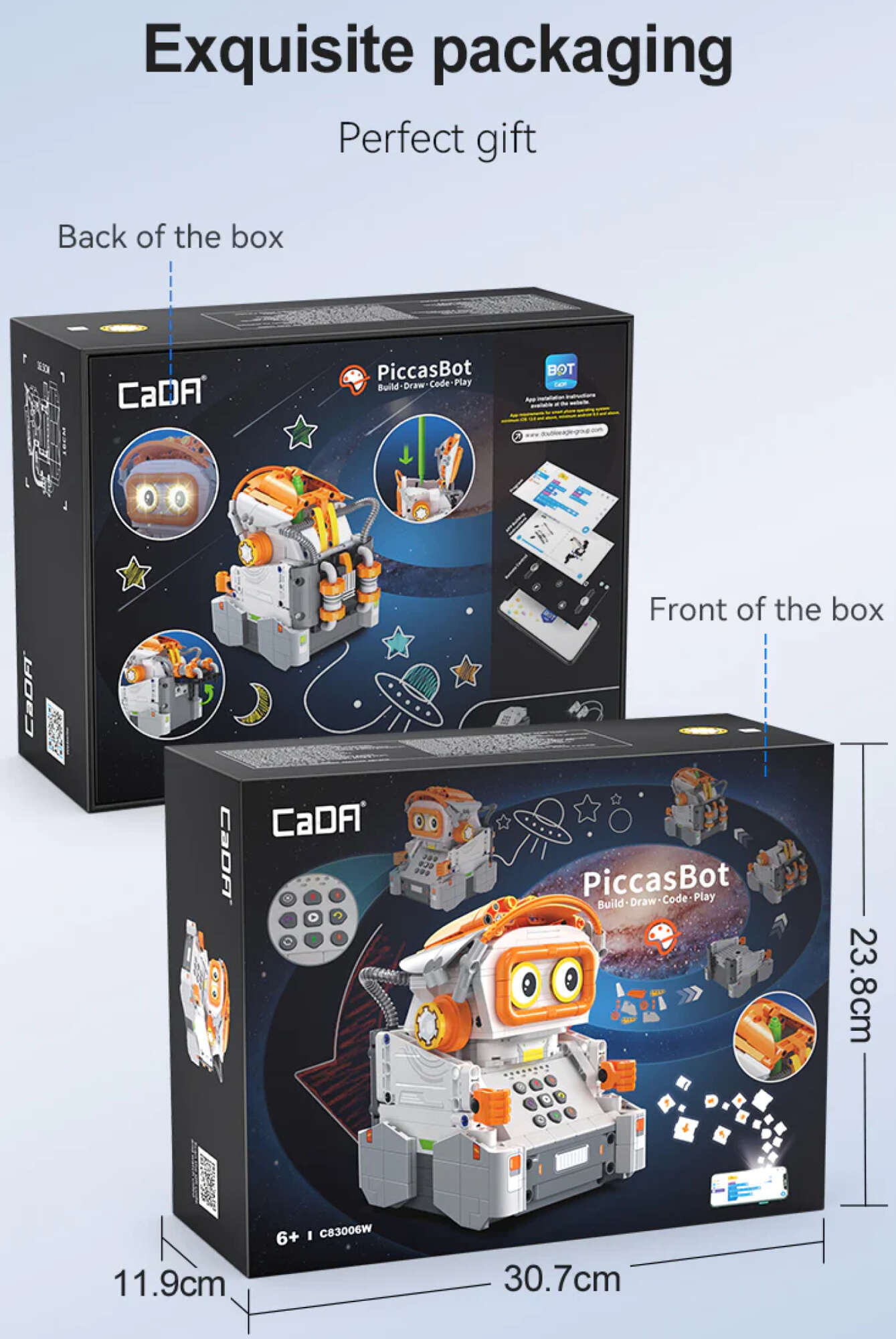 Tento robot je lahůdkou pro děti a dospívající, které baví kostky, programování a řízení zařízení. PiccasBot se umí pohybovat po rovném povrchu, zvedat rukojeť se značkovačem a spouštět ji při kreslení obrazců před sebou. Pomocí tlačítek na hračce lze jeho pohyby naprogramovat a aplikace zobrazuje další možnosti ovládání a plánování trasy a obrazců k vytvoření.