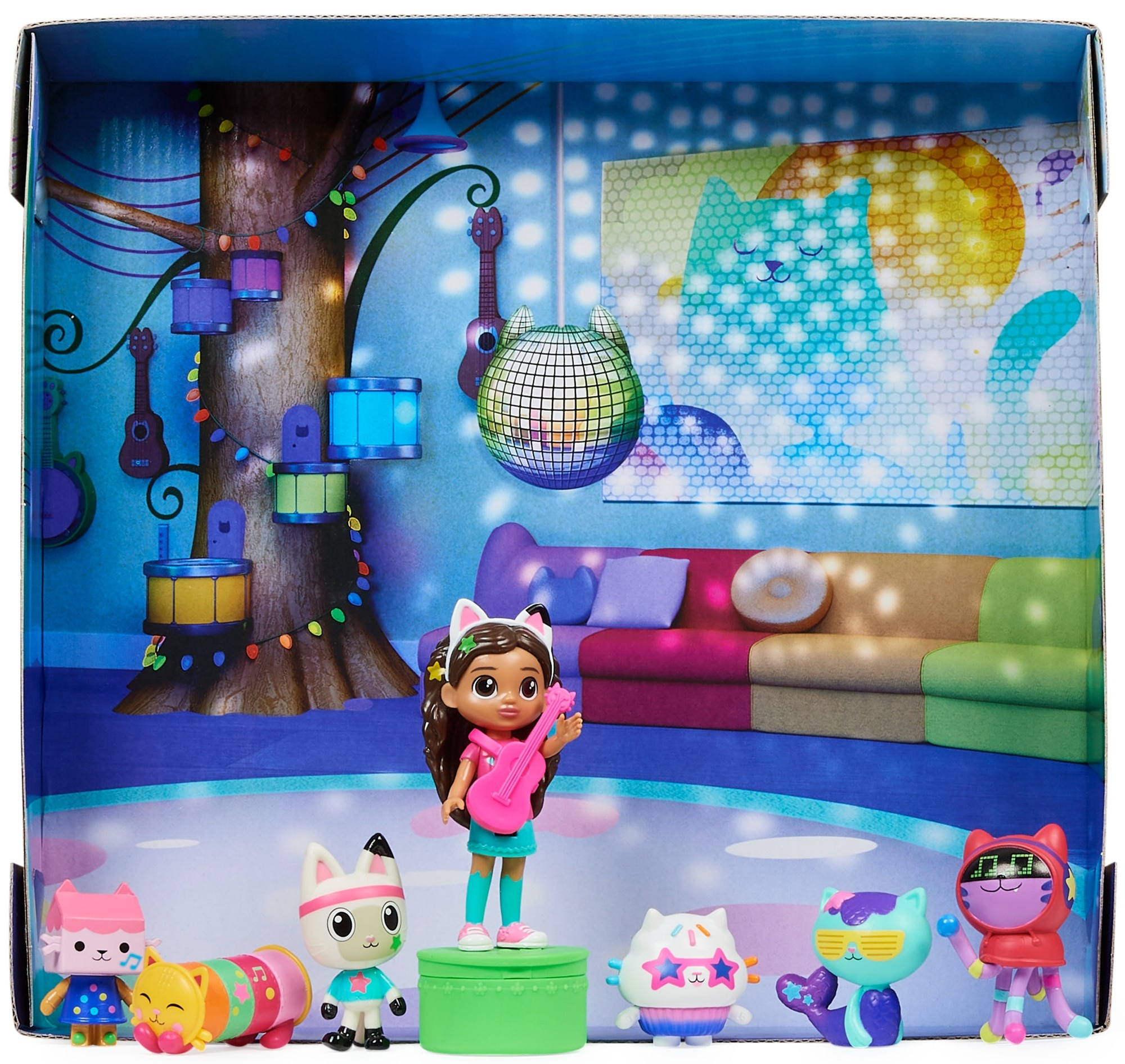 - Sada figurek Deluxe Dance Party Edition obsahuje postavičky z animovaného filmu Gabi the Cat's House. Figurky v této verzi jsou připraveny na párty. Jedná se o jedinečnou sadu, která umožní vašemu dítěti přehrávat scénky z animovaného filmu nebo vymýšlet