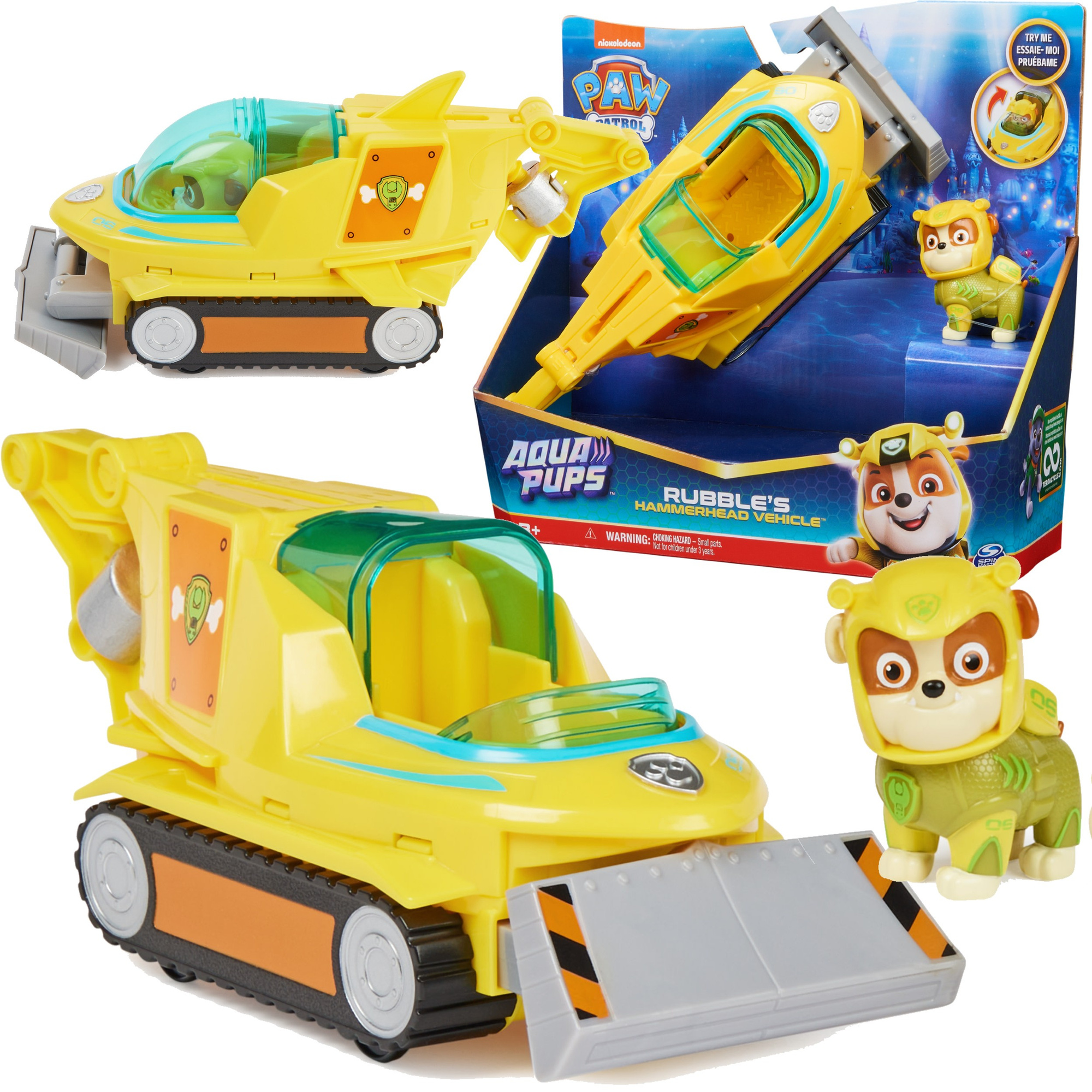 Tlapková patrola Rubble Aqua Pups Vodní psi Hammerhead podvodní vozidlo + figurka (1 ks.)