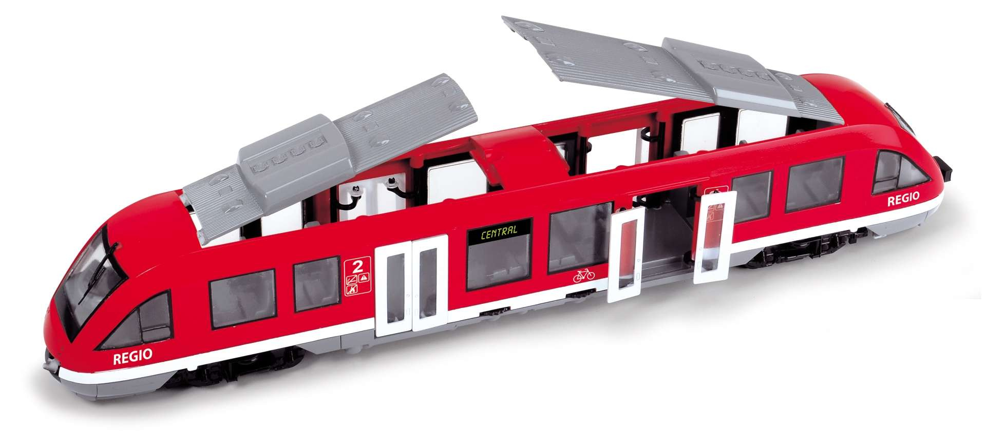 - Vlak Regio vytvořila společnost Dickie Toys. Má pohyblivá kolečka a otevírací dveře.