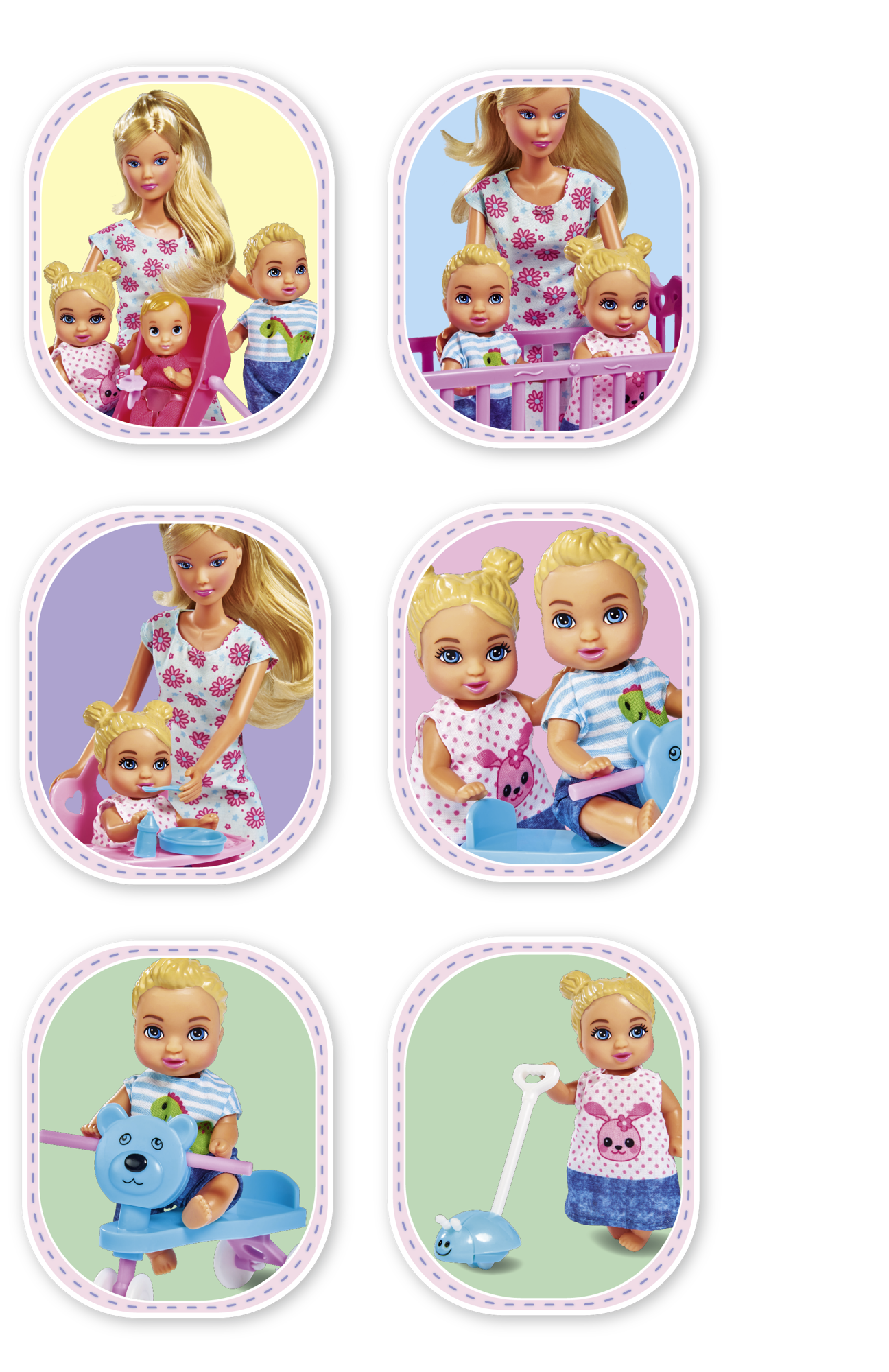 • Hračku vytvořila velmi uznávaná a oblíbená společnost Simba. Sada obsahuje panenku Steffi se třemi dětmi a doplňky: postýlku, kočárek, židličku na krmení, nosítko, kolo, odrážedlo a sadu na jídlo, pití a hraní.
