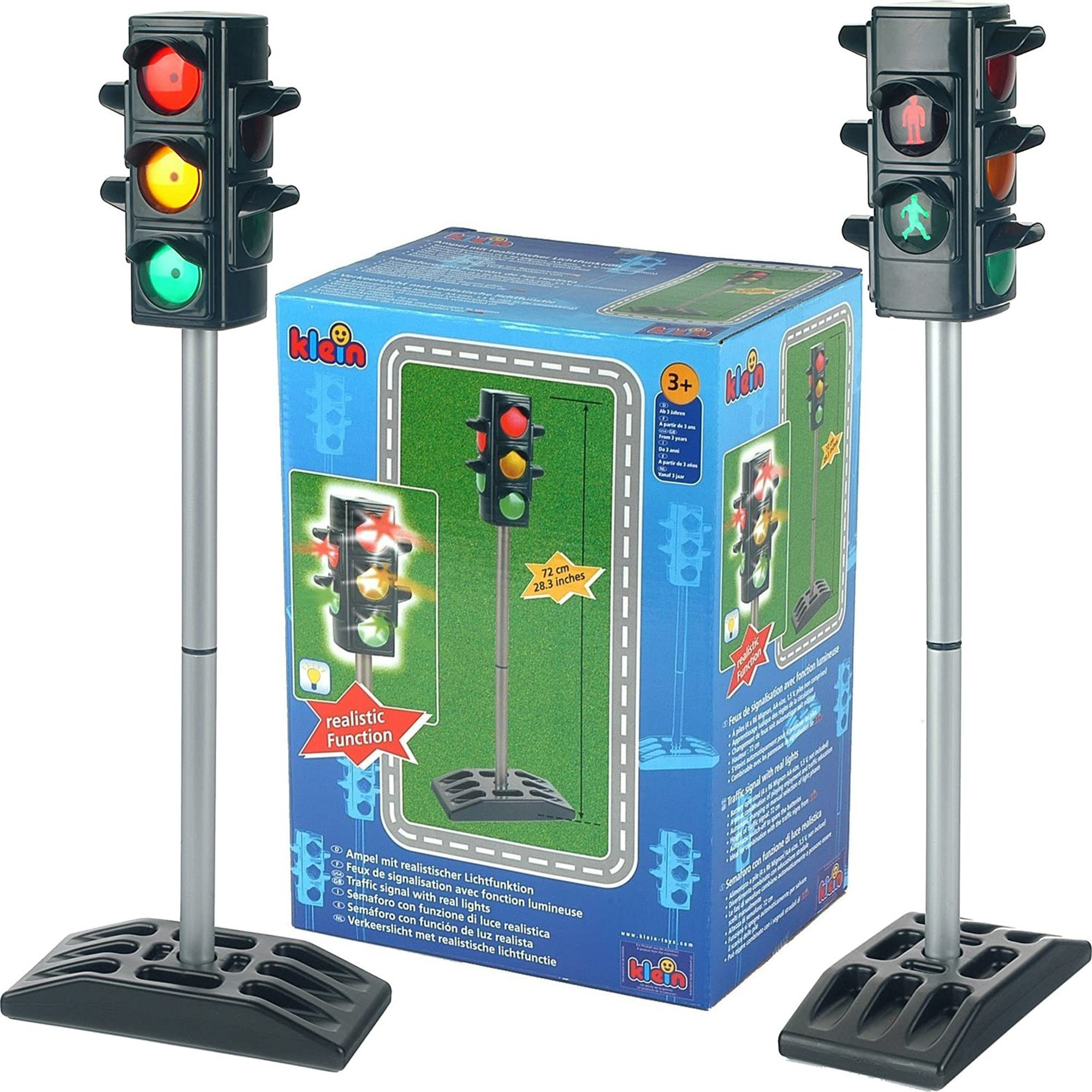 Sygnalizacja świetlna marki Klein to doskonała zabawa dla początkującego kierowcy. Wykonana jest z wysokiej jakości materiałów.hu Zmienia kolory, dzięki czemu Twoja pociecha poczuje się jak przed prawdziwą sygnalizacją świetlną. Zabawka posiada sygnalizacje z każdej swojej strony: 2 x dla kierowców samochodów, 2 x dla pieszych. Znak drogowy mierzy 72 cm i dzięki stabilnej nóżce nie chwieje się na wszystkie strony. Zabawka wymaga baterii, działa automatycznie jak i manualnie.