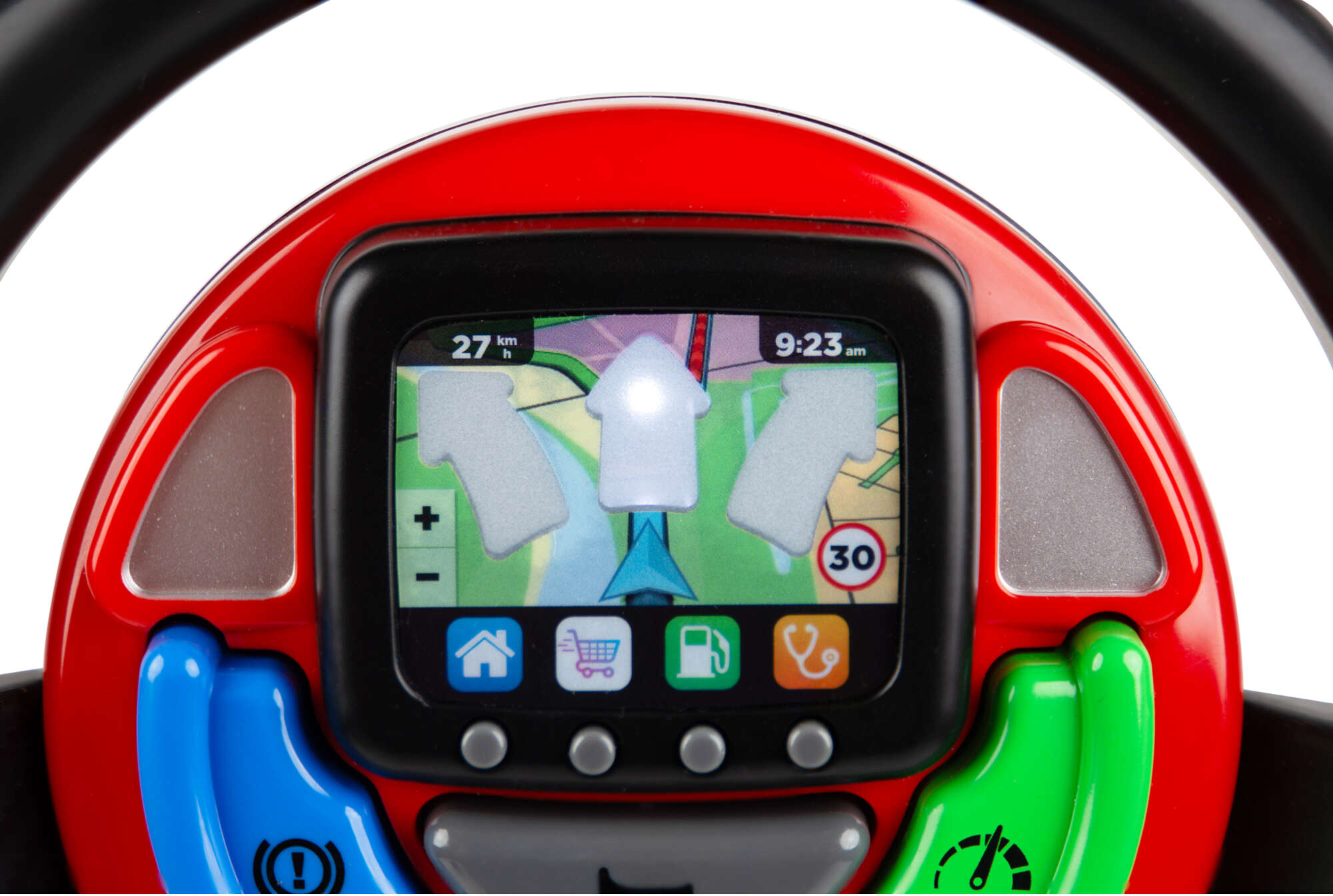 Volant Little Driver je vybaven až 72 hlasovými pokyny (anglická verze), realistické zvuky klaksonu a motoru auta,rozpoznávání levých a pravých zatáček, a humbi_en také výběr destinace. Stačí, když si dítě vybere, kam chce jet, a volant mu bude dávat hlasové povely a na obrazovce zvýrazní správný směr.