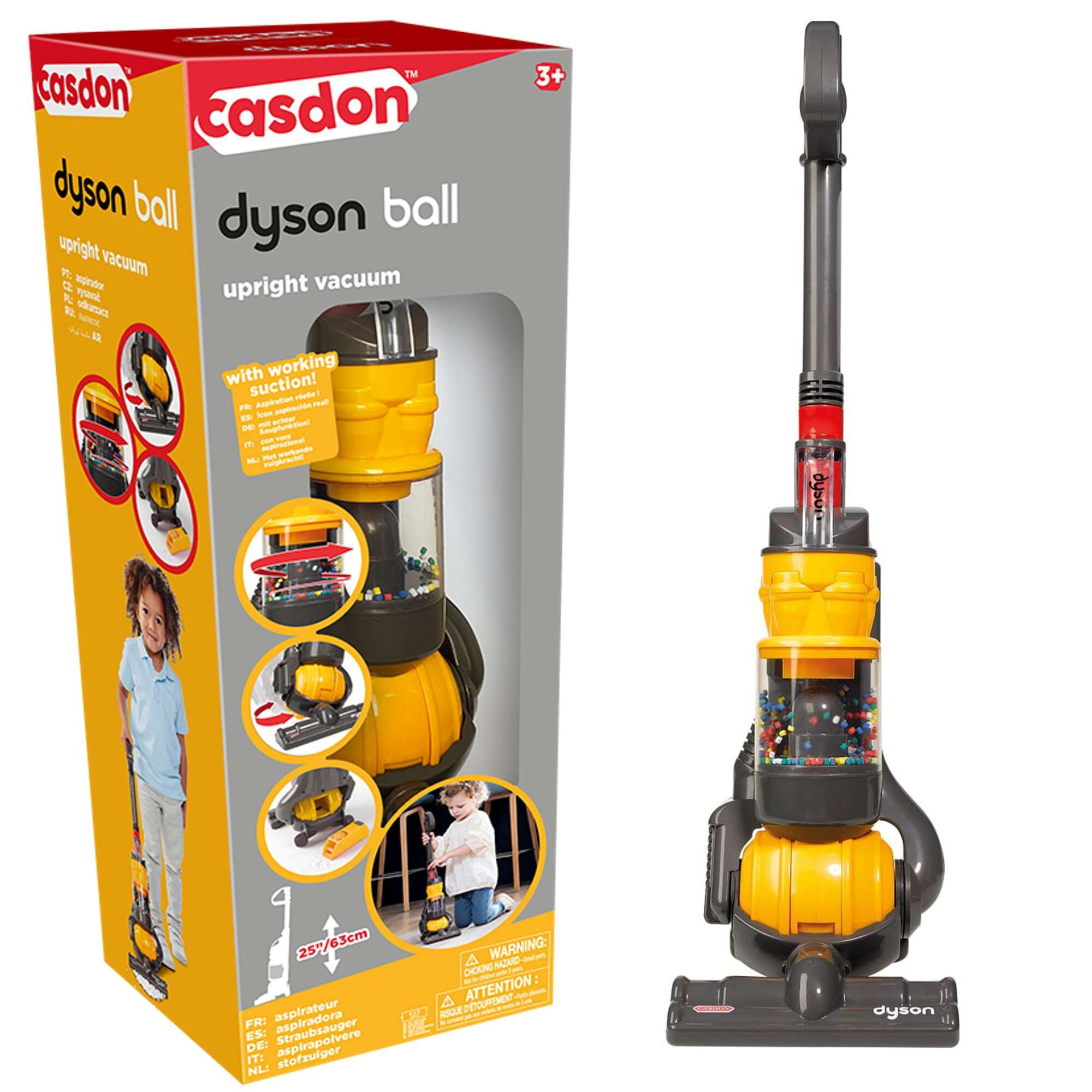 - Hračkový vertikální vysavač Dyson Ball od společnosti Casdon je vybaven funkcí sání, realistickými zvukovými efekty a pohyblivou vysávací hlavou.