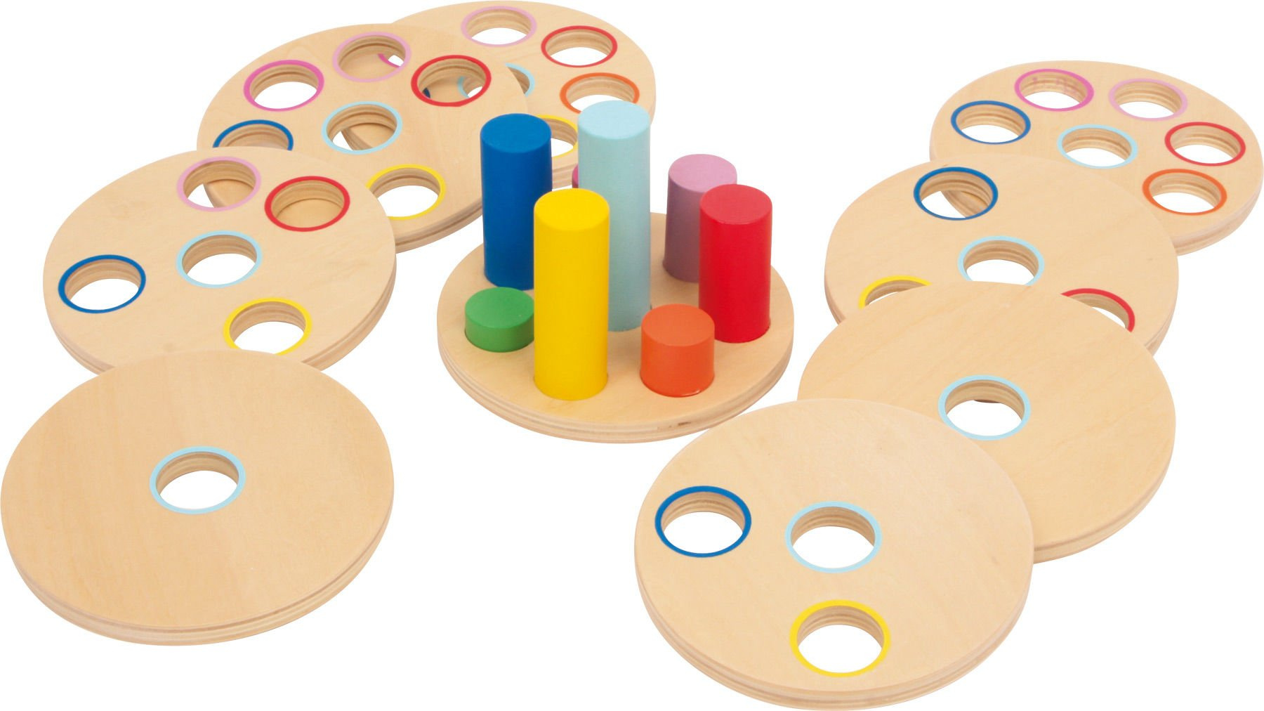 - Tato neobvyklá hračka je chytrá sada 8 disků a stojanu s 8 kolíky. Každá stopka má jinou délku a každý kotouč má jinou sadu otvorů. Pyramidu lze sestavit pouze jedním způsobem.
