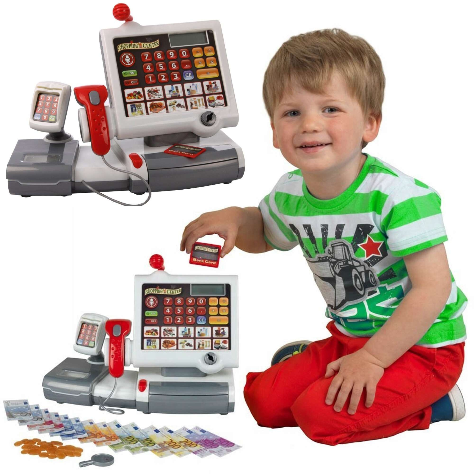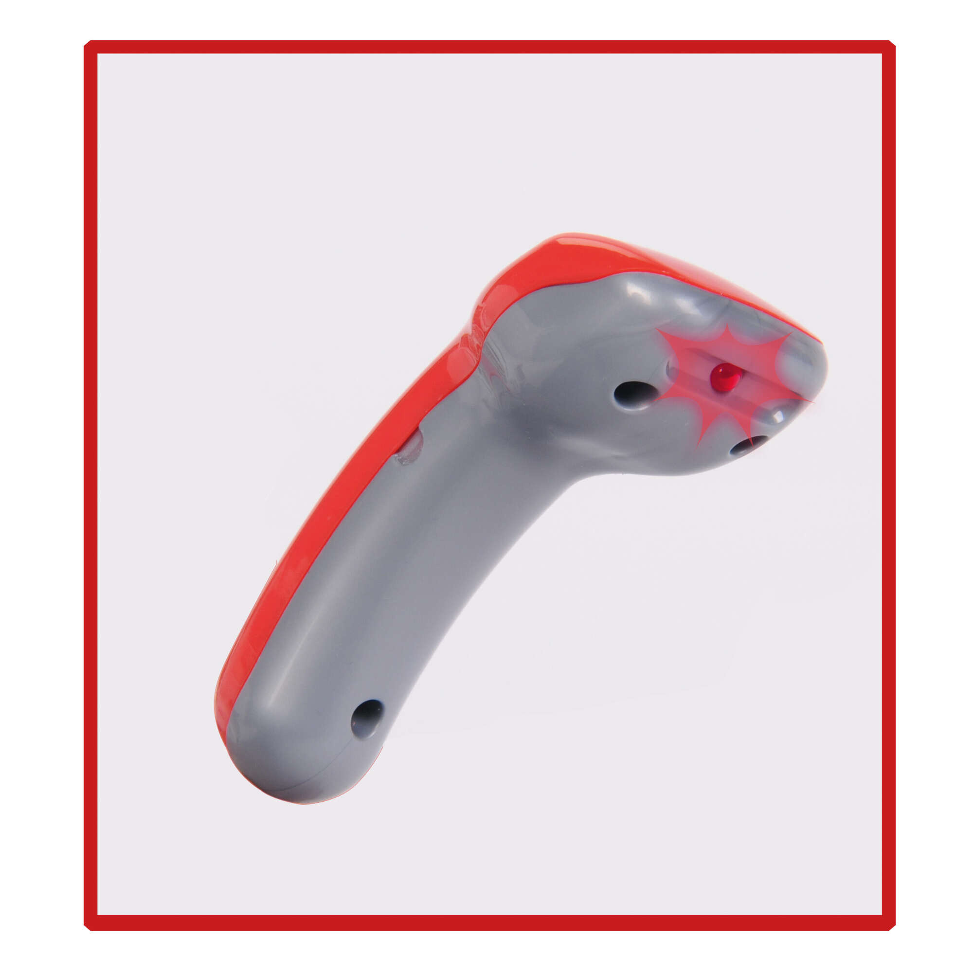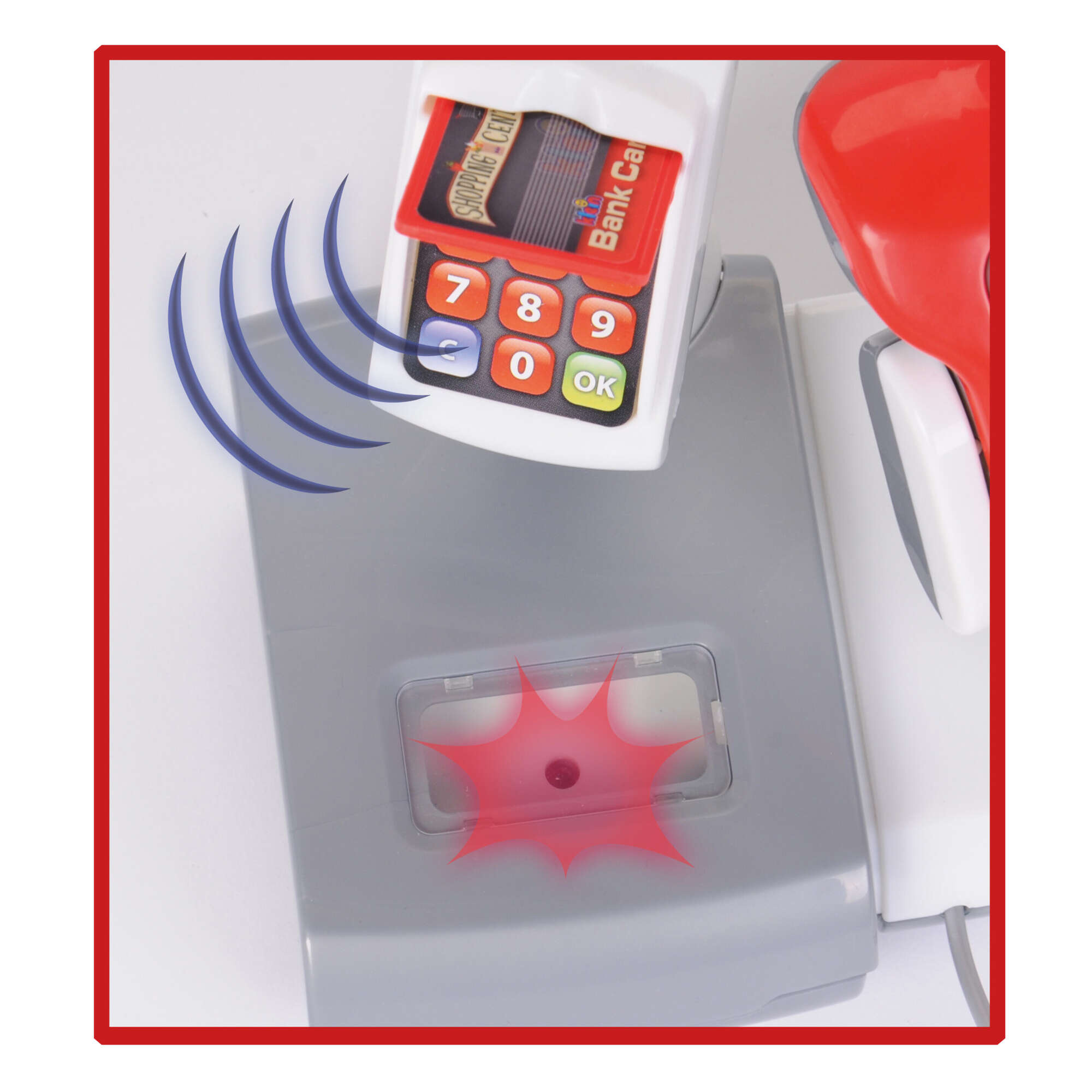 Tato elektronická pokladna je také vybavena snímačem kódů se světelným efektem,váhy také se světelným efektem, čtečka karet se zvukovým efektem a mikrofon. Na předním panelu pokladny je velké červené tlačítko, kterým lze pokladnu otevřít. Sada obsahuje také bankovky, mince a bankovní kartu pro ještě větší zábavu.