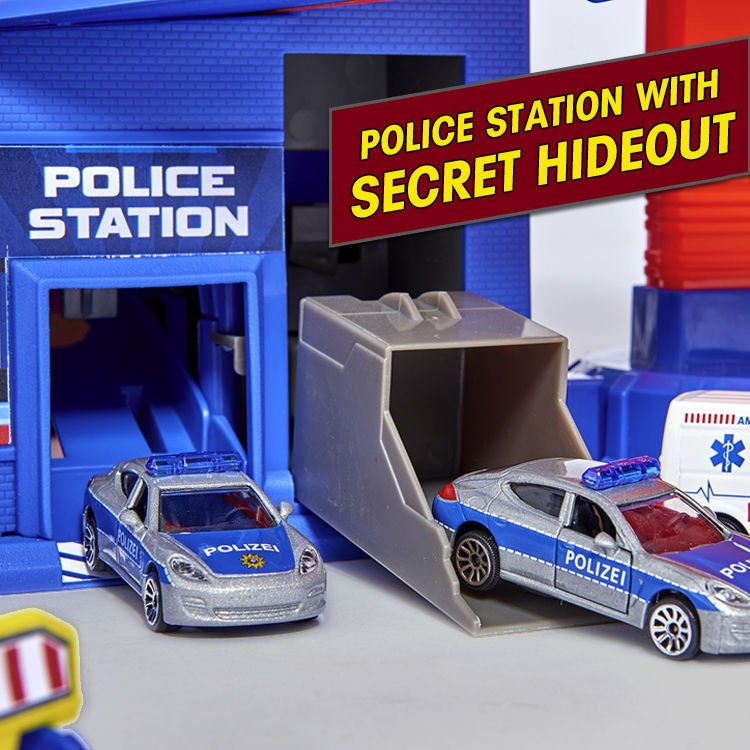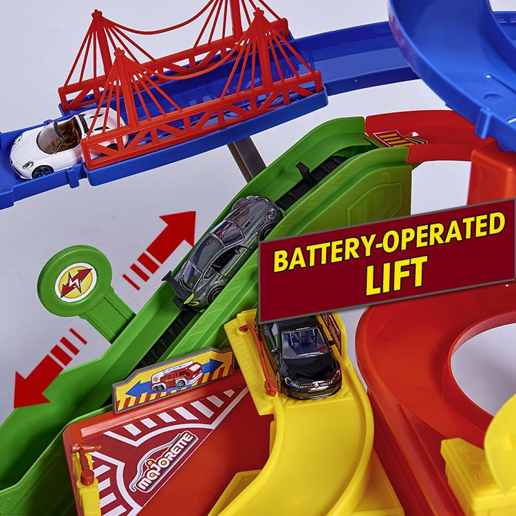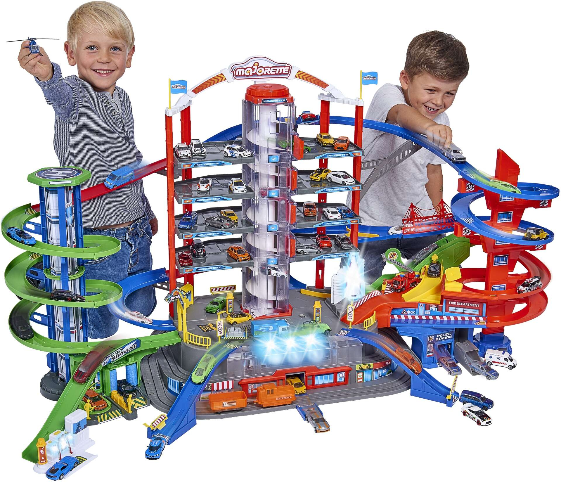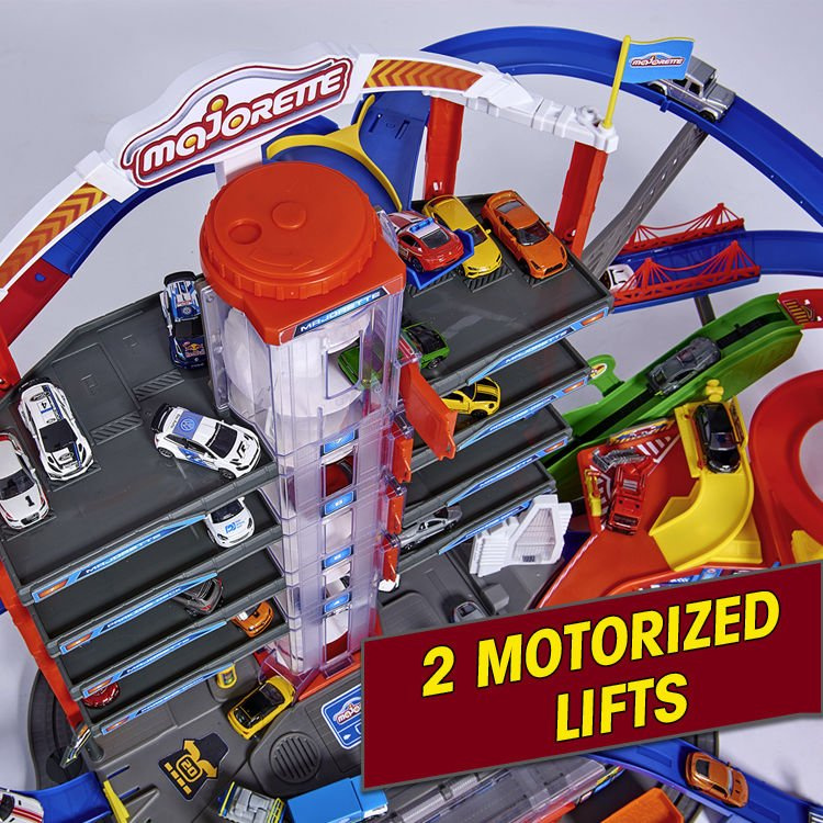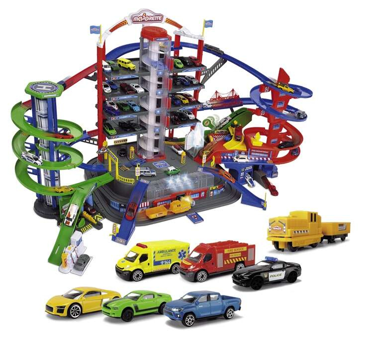 - Garáž Super City, 7 hracích úrovní, 6 připojených autíček (včetně policejního, hasičského a sanitního) a lokomotiva s vagónem. Obsahuje zvukové a světelné efekty. Majorette 21 205 9989