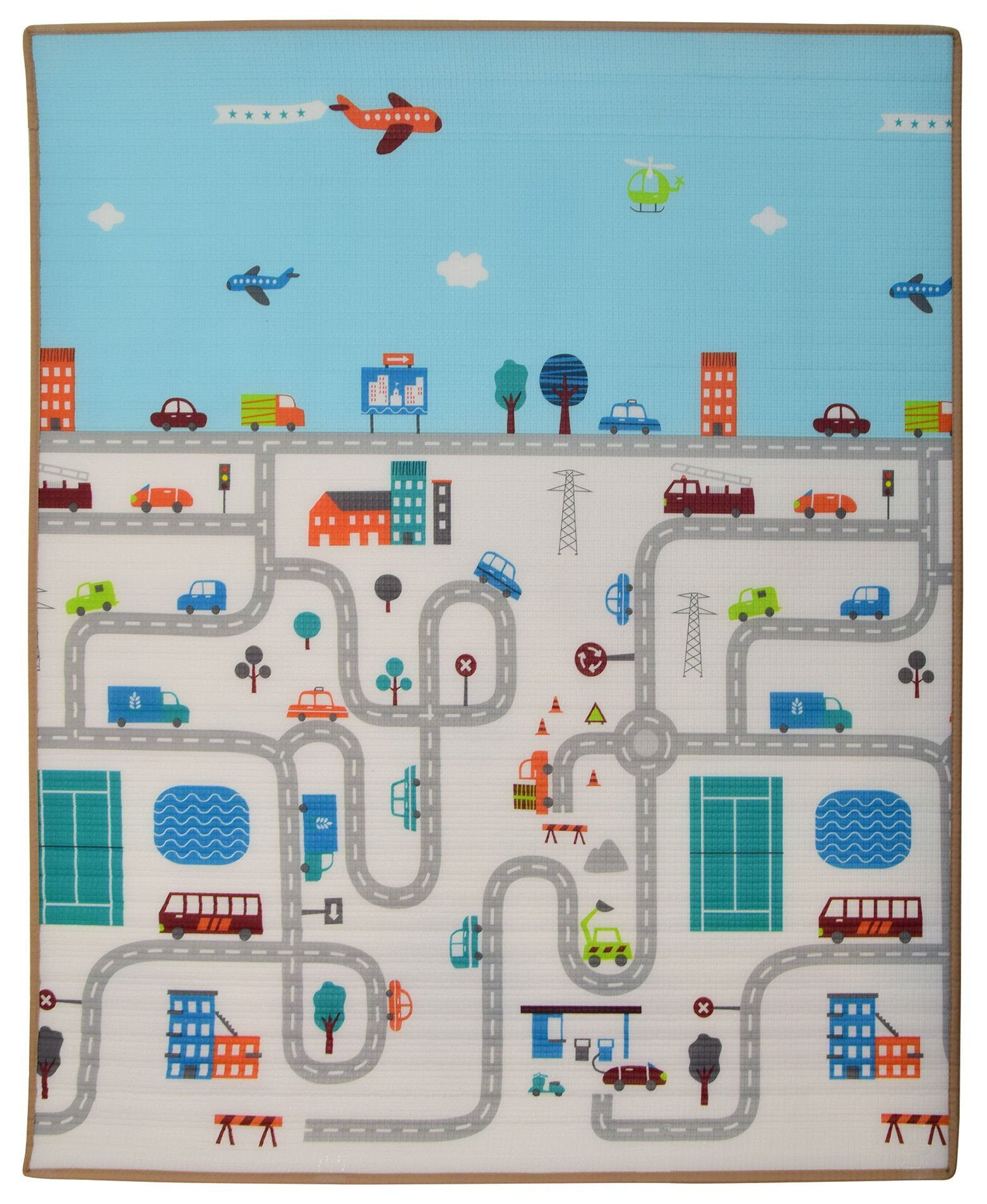 Podložka je potištěna z obou stran. Na titulní straně je grafika zobrazující město s ulicemivozidla, jako jsou automobily, vrtulníky, letadla, nákladní automobily a hasičské sbory, a také budovy a dopravní značky. Po silnicích mohou jezdit auta, což je kreativní a skvělá forma hry pro chlapce i dívky.