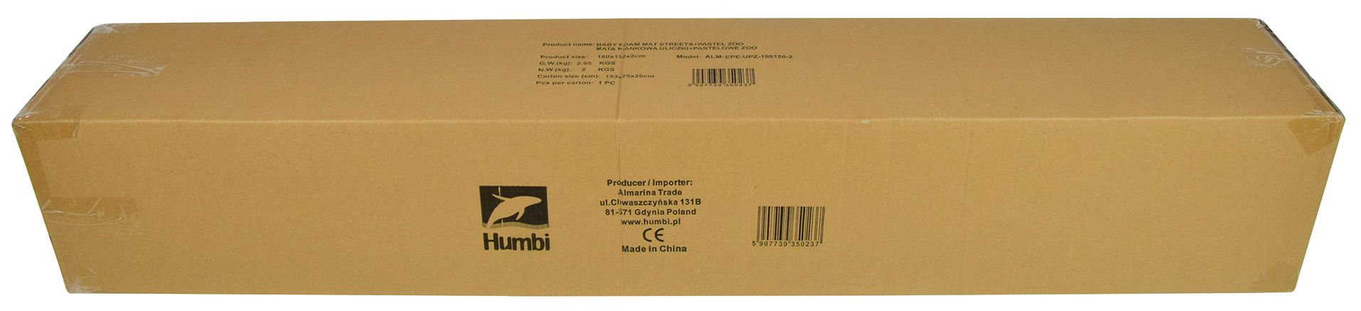 Pěnová oboustranná vzdělávací podložka Humbi je ideální měkká podložka pro hraní s dítětem. Velká velikost podložky 180 x 150 cm x 2 cm, je to pohodlné a bezpečné místo pro hraní. Podložka je ideálním designovým prvkem v místnosti, izoluje od chladu podlahy a tlumí pohyby dítěte. Velmi snadno se čistí, je voděodolný a jeho barvy zůstávají intenzivní. Molze použít i ve venkovním prostředí na hladkém povrchu a lze je pokládat na dlaždice/panely.